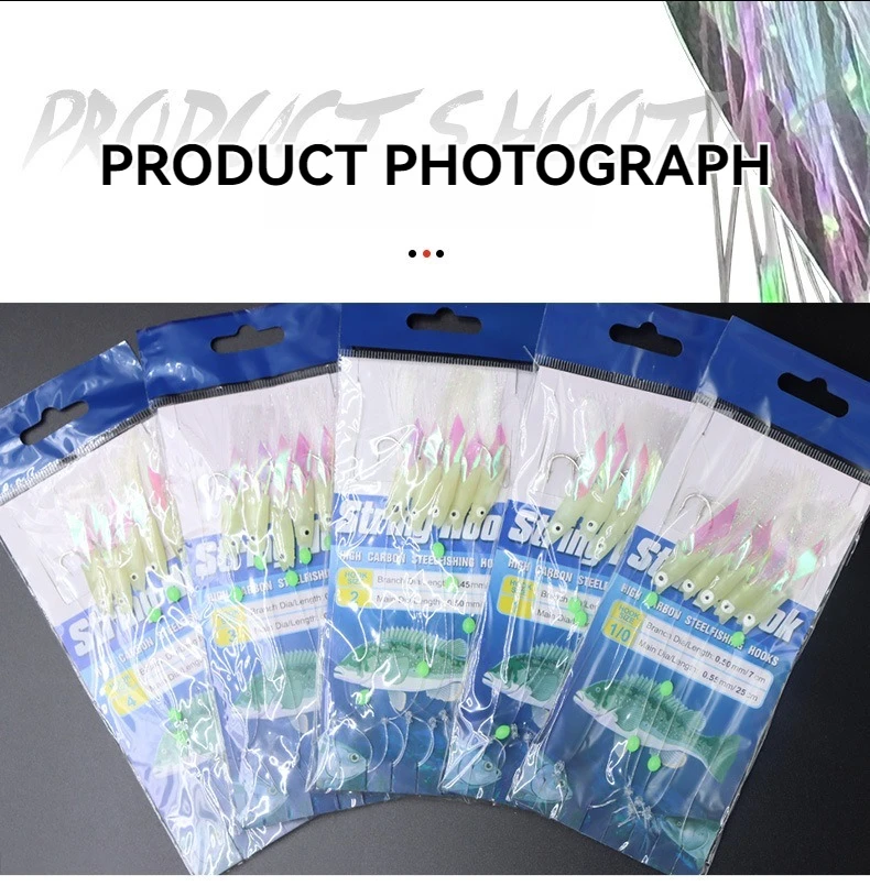 3 #-Longitud del gancho: 2,2 cm-Ancho del gancho: 1,1 cm-Longitud de la línea principal: 153cm-Diámetro de la línea principal: 0,5mm-Longitud del tippet: 6,5 cm-Diámetro del tippet: 0,4mm.