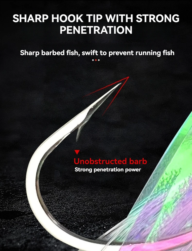 4 #-Longitud del gancho: 2cm-Ancho del gancho: 0,9 cm-Longitud de la línea principal: 162cm-Diámetro de la línea principal: 0,5mm-Longitud de la punta: 7cm-Diámetro de la punta: 0,4mm.