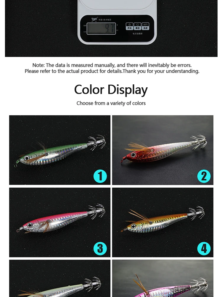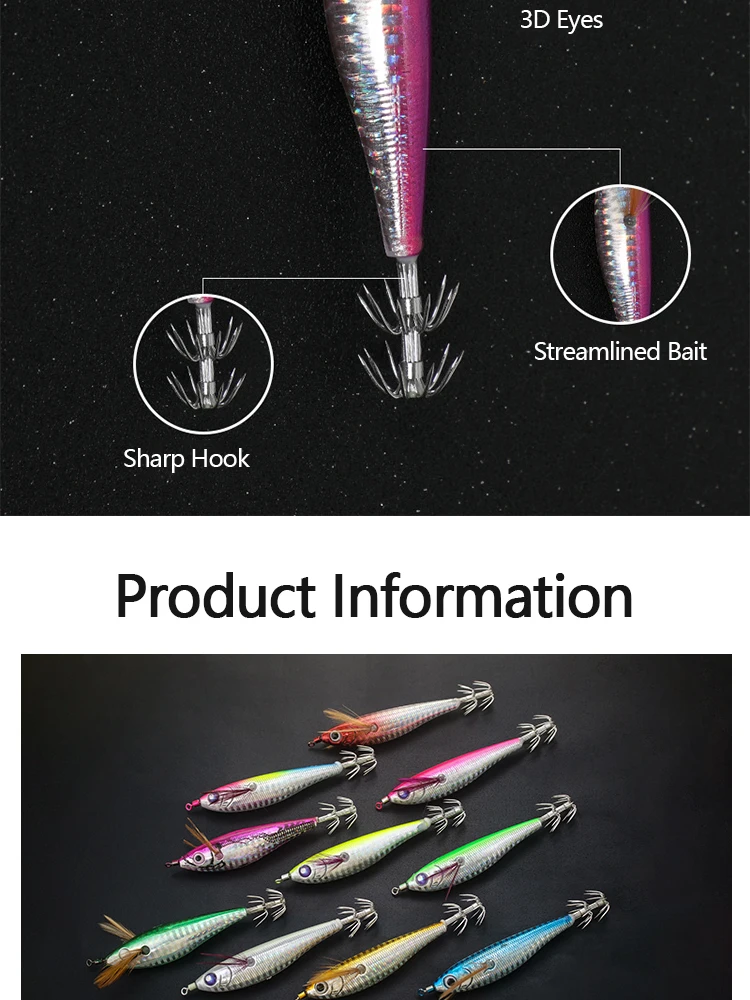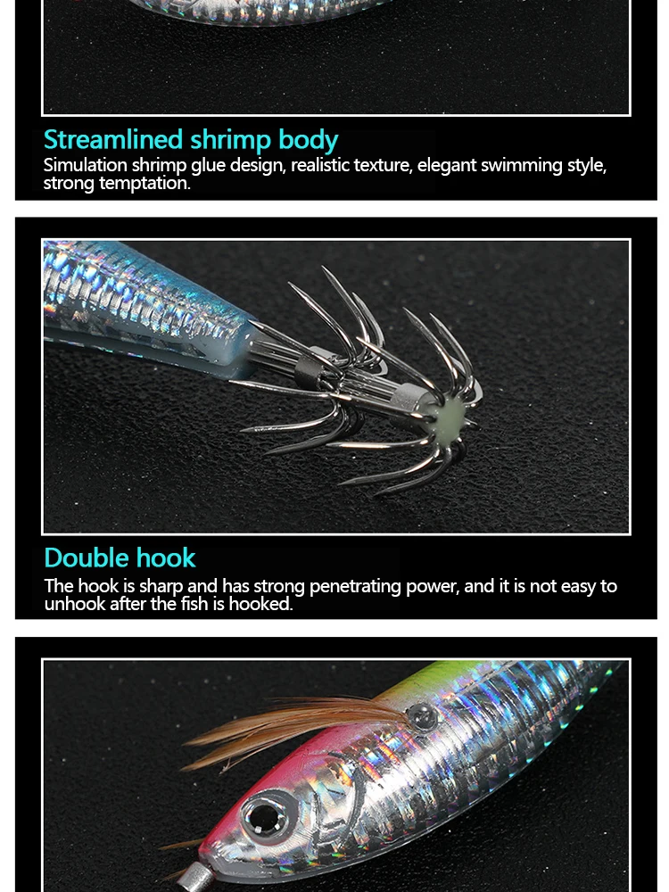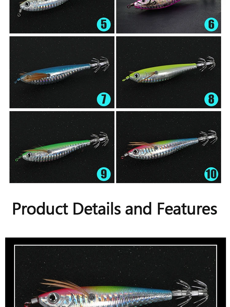 Cebo artificial de madera para Camarón, juego de anzuelos de calamar, simulación láser horizontal, gancho de pesca falso, 10 unidades