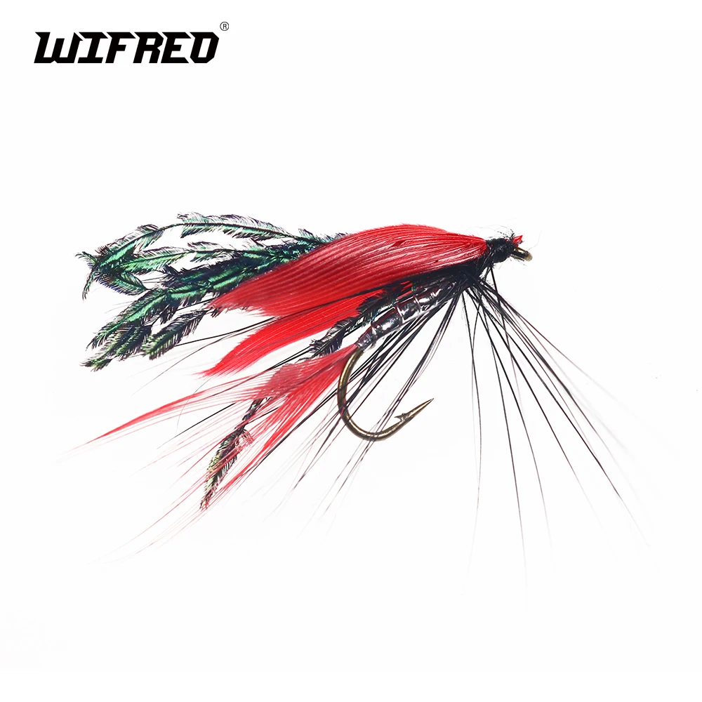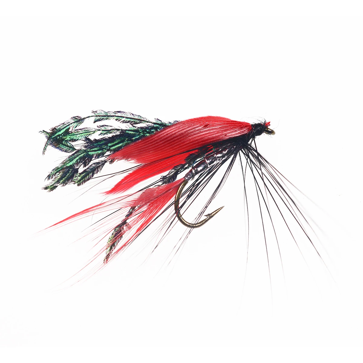 Carnada Artificial de pesca 10 piezas 10 # ala de pavo real rojo mosca loca trucha