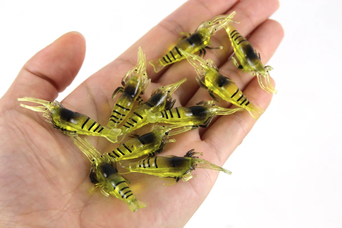 10 Uds. Cebo Artificial luminoso de silicona para camarones, simulación de camarón suave con ganchos, Wobbler de carpa para aparejos de pesca, señuelo de carpa