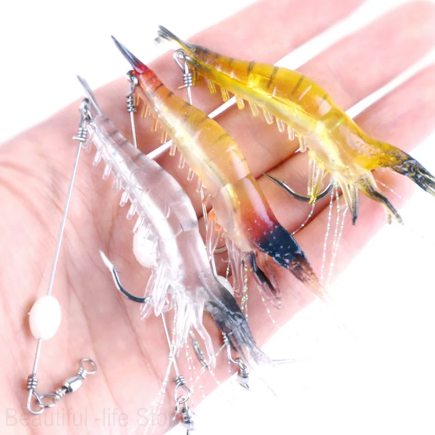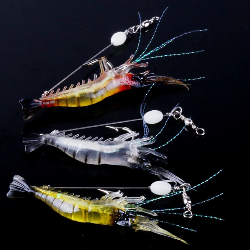 Cebo Artificial de silicona suave para Camarón, señuelo luminoso de 9cm/6g con anzuelos giratorios, aparejos de pesca, entrega rápida, gran oferta, 2 piezas, nuevo