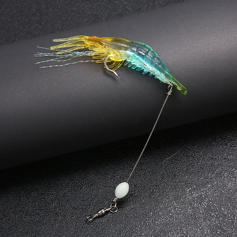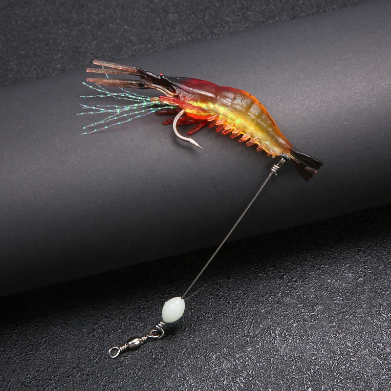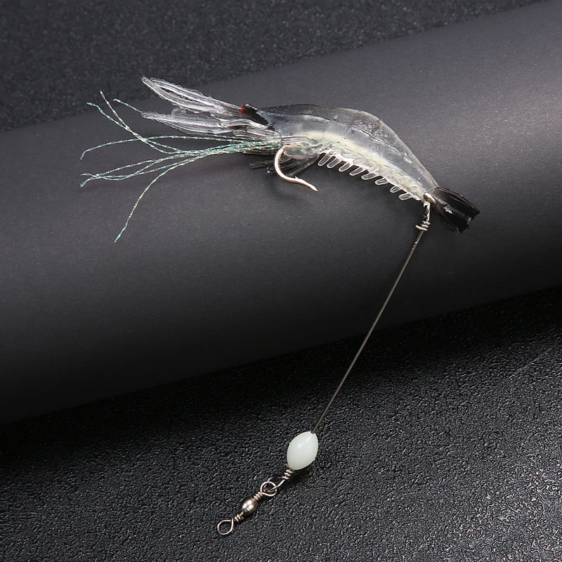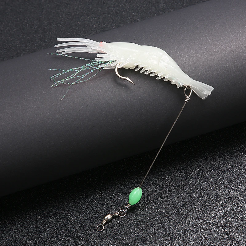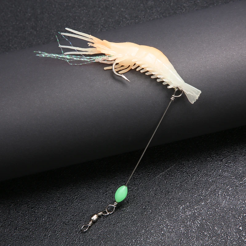Cebo Artificial de silicona suave para camarones falsos luminosos, 8cm, 6,5g, con cuentas giratorias, anzuelo para pesca, aparejo Sabiki, aparejos de pesca de mar