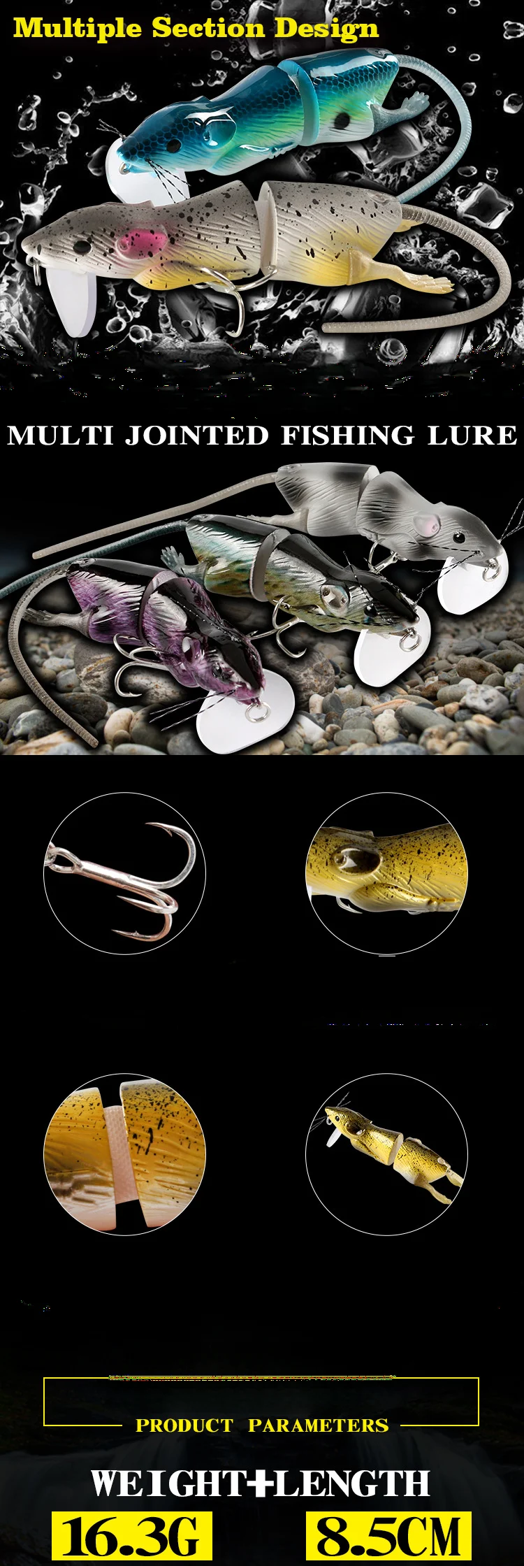 Cebo Artificial Wobbler para Pesca de pececillos, señuelo de ratón de varias secciones para lubina, Topwater, wakebait, 85mm, 15g