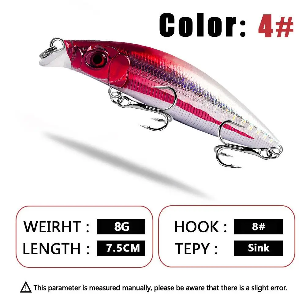 Color: Como se muestra en la imagen Material: Plástico Tipo: VIB Longitud: 7,5 cm (2,95 pulgadas) Peso: 8g Embalaje: Una pieza de anzuelos de Cebo: 8 # gancho Yamamoto reforzado, anzuelo afilado y fuerte, superficie antioxidante, uso duradero Adecuado para pesca en mar y agua dulce: Lubina, pez negro, Bagre, pescado verde, pez mandarín, carpa hierba, etc.
