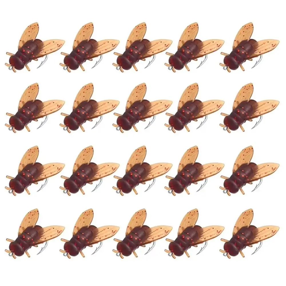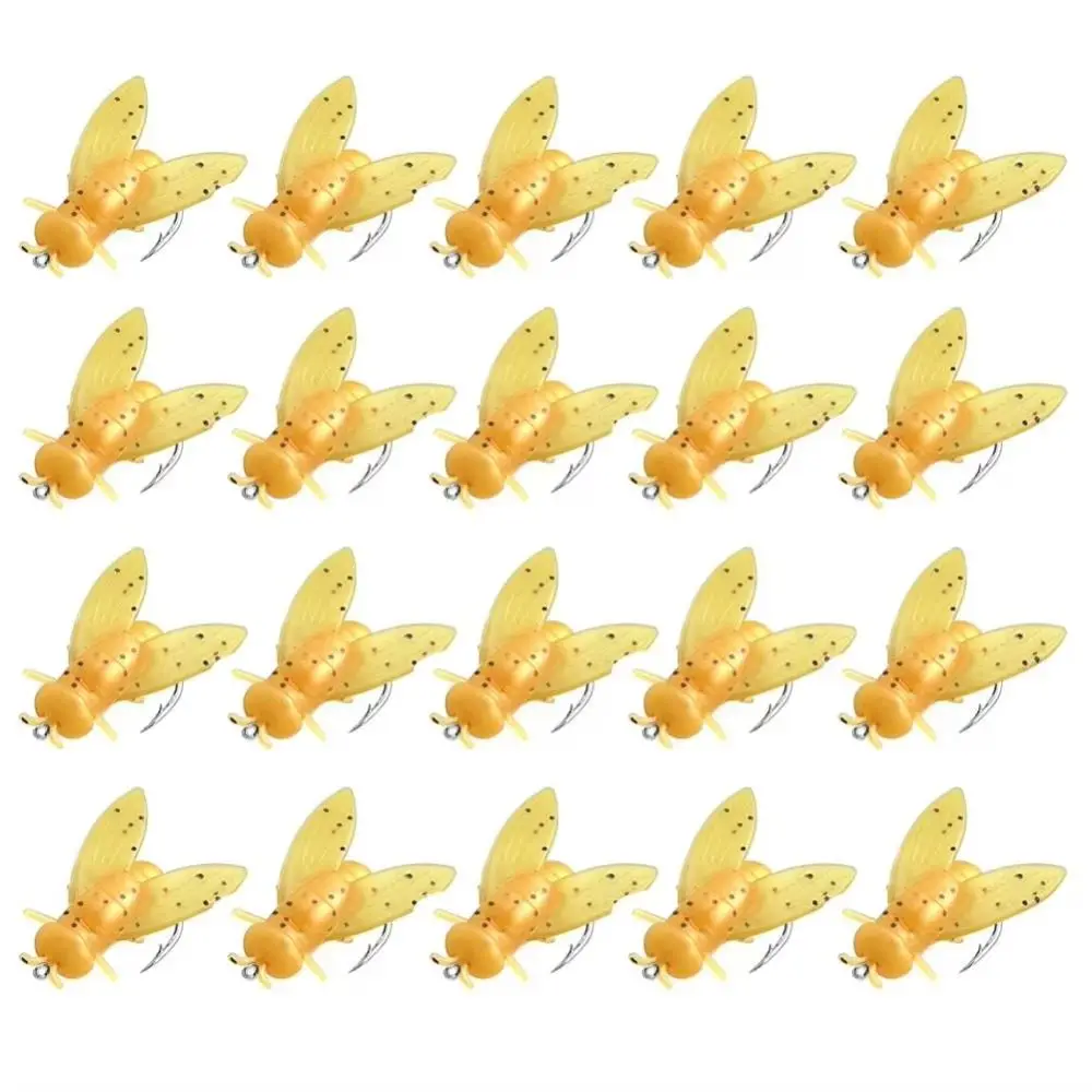 1.Realistic appearance: The appearance design of the fly bait is very realistic. Whether in bright daytime or dark night, it can highly restore the shape of natural flies, which is very attractive to fish. A pack includes 20 pieces of bait, enough for your use