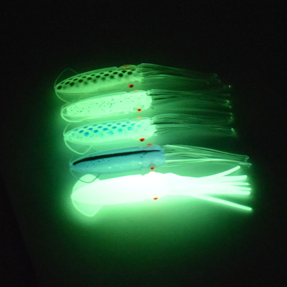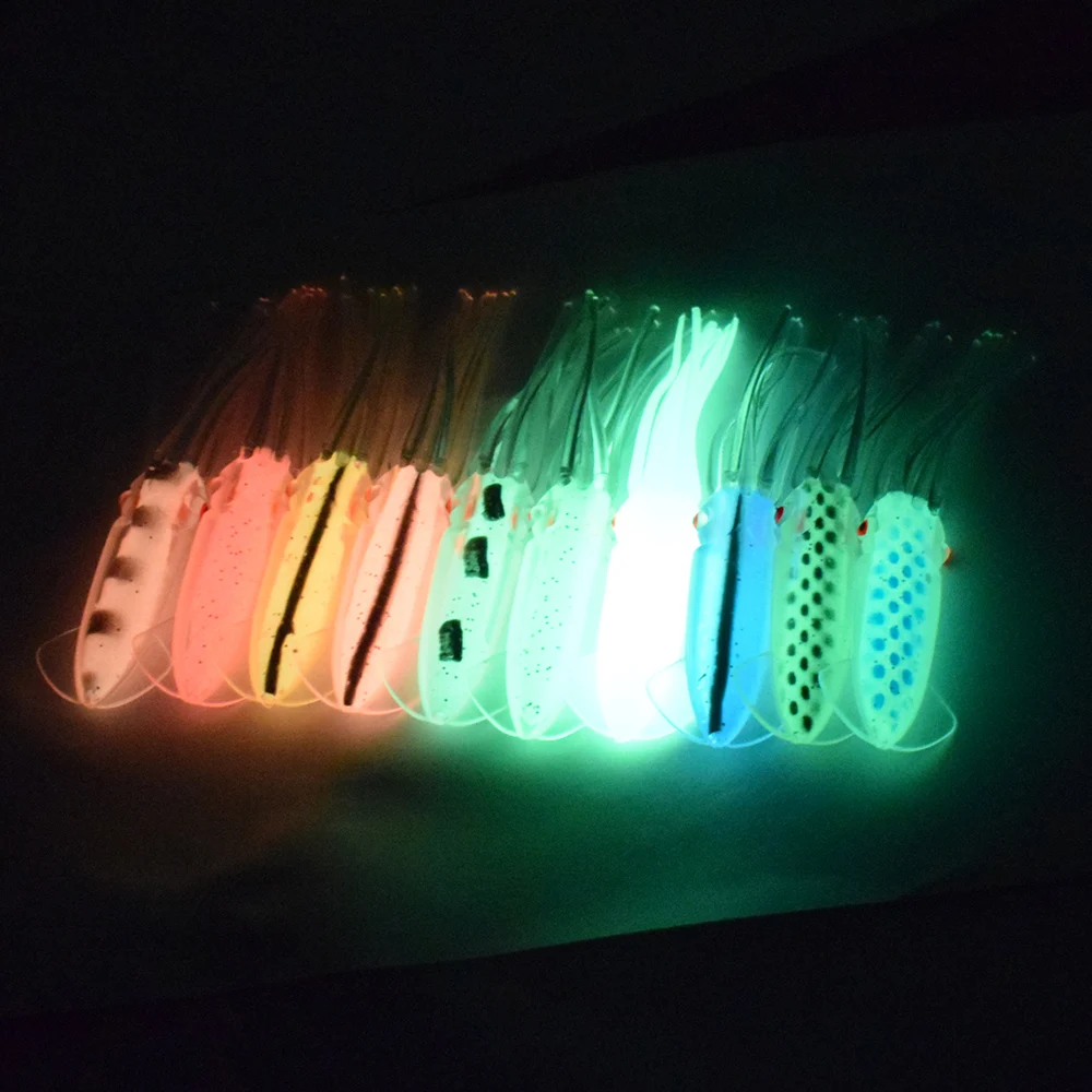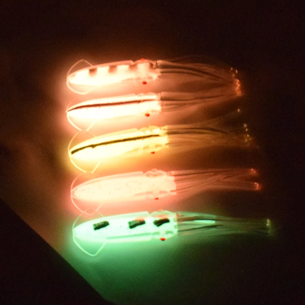 Cebo blando de calamar luminoso de alta gama, pesca de arrastre, simulación de pesca en el mar, cebo suave con batidores
