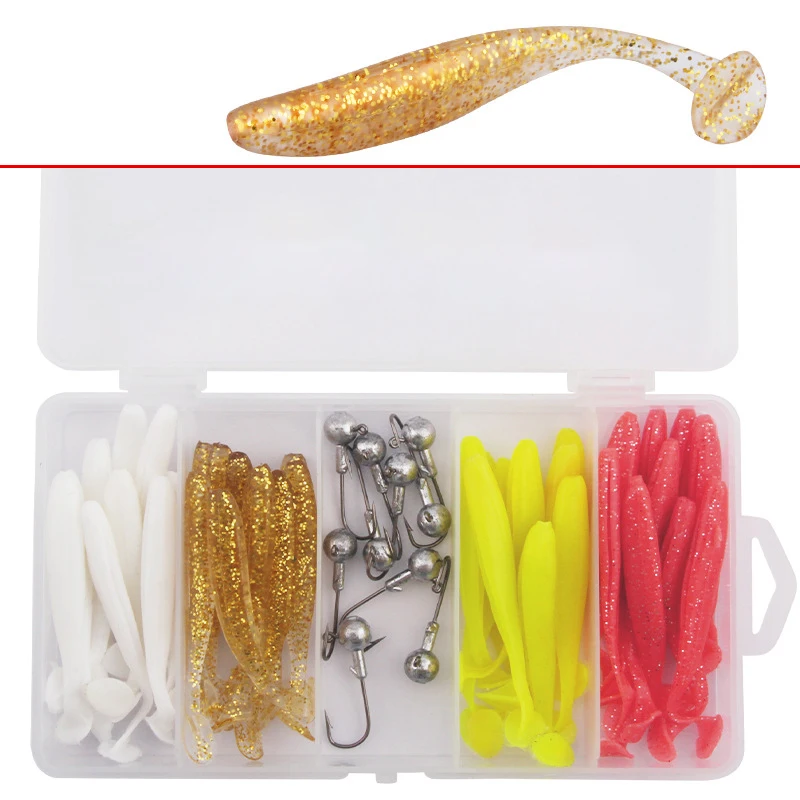 Cebo blando de cola en T para agua dulce, gancho de plomo de gusano suave Luya, perca de largo alcance, cebo falso de pez mandarín, 20 piezas, 40 piezas