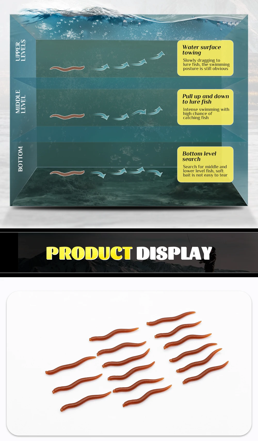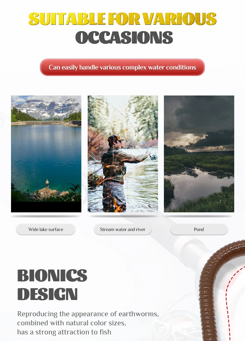 Cebo blando de lombriz de imitación con aroma a camarones, cebo blando con señuelo de gusano de sangre. Adecuado tanto para pescar en agua dulce y salada.