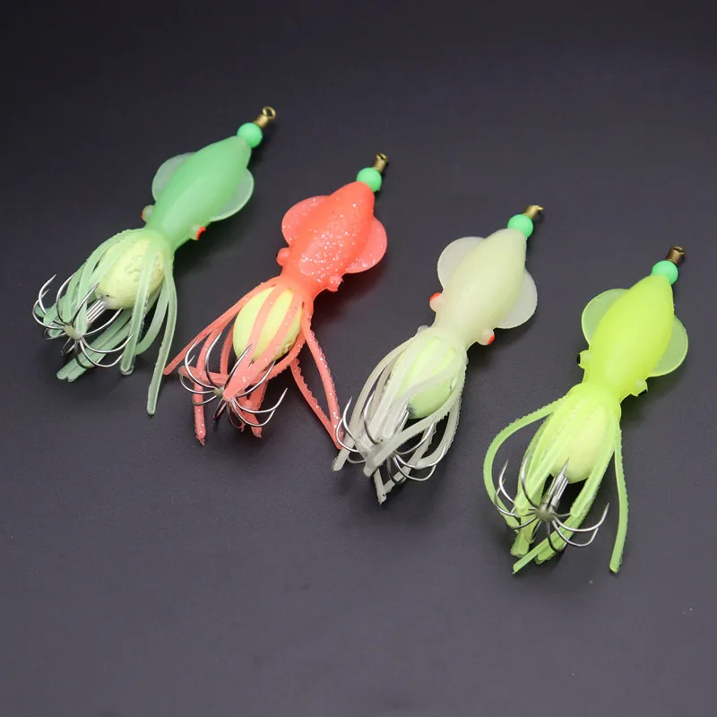 Cebo blando para pesca de lubina, anzuelo de calamar, pulpo UV, luminoso/resplandeciente, señuelo, corvina amarilla, 11cm, 66g