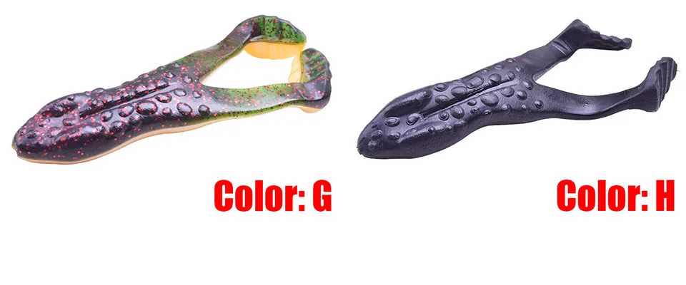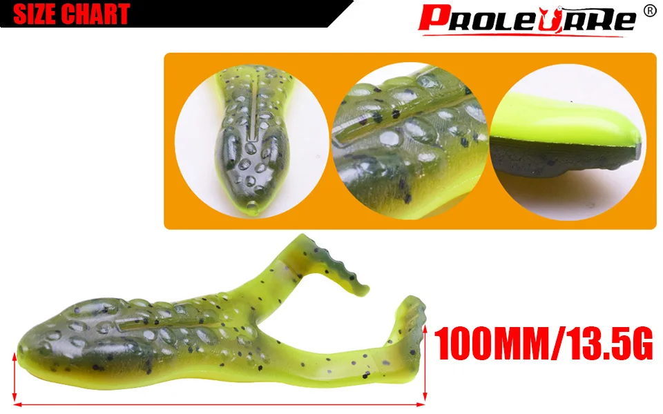 2 unids/lote cebo suave de rana de goma 100mm 13,5G cebo de silicona grande todos los señuelos de agua pesca para carpa lubina Wobblers aparejos de pescaMarca: ProleurreTipo: cebos blandos de ranaLongitud: 100mmPeso: 13,5GColor:8 colores diferentesIs_personalizado: SíMaterial: silicona/plásticoPeces objetivo: bajo, bagre caminante, cabeza de serpienteEmbalaje: bolsa especial de señuelo suave ProleurreLista de embalaje2 * cebos blandos