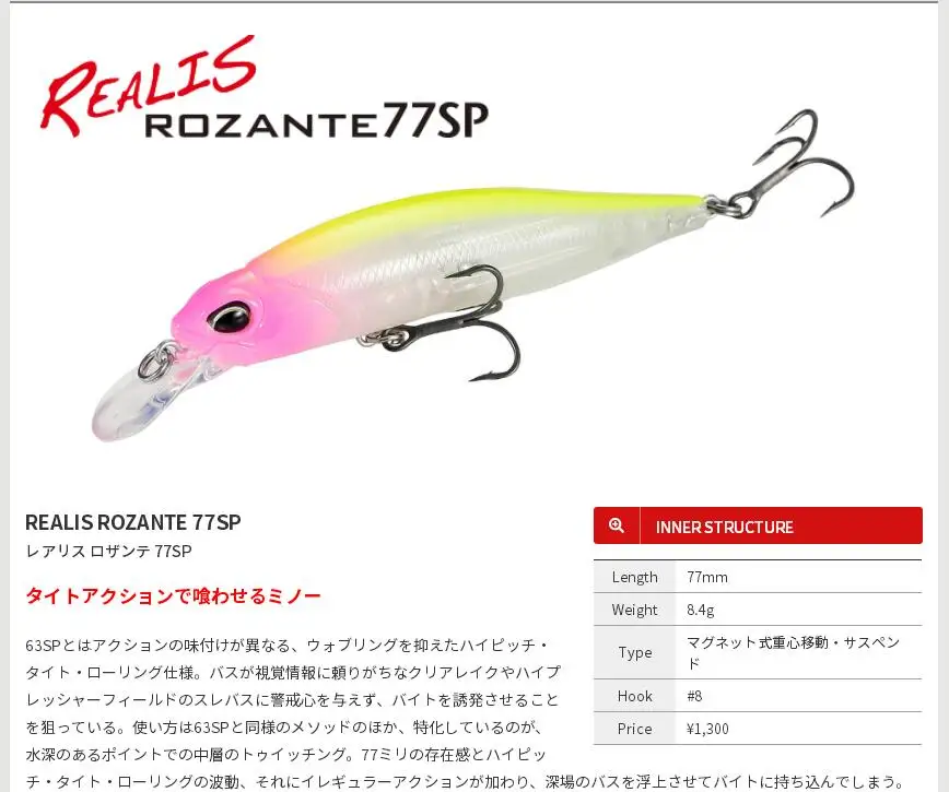 Cebo de bombeo suspendido, cebo japonés DUO REALIS ROZANTE 77SP, Mino chuatfish sub, 8,4g