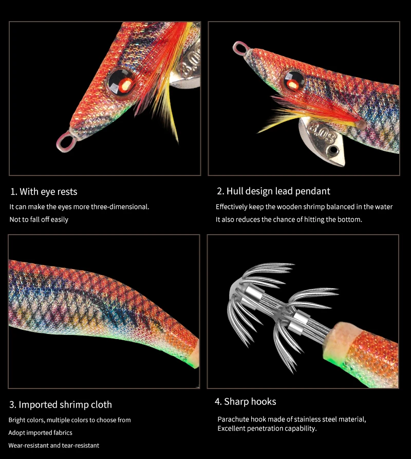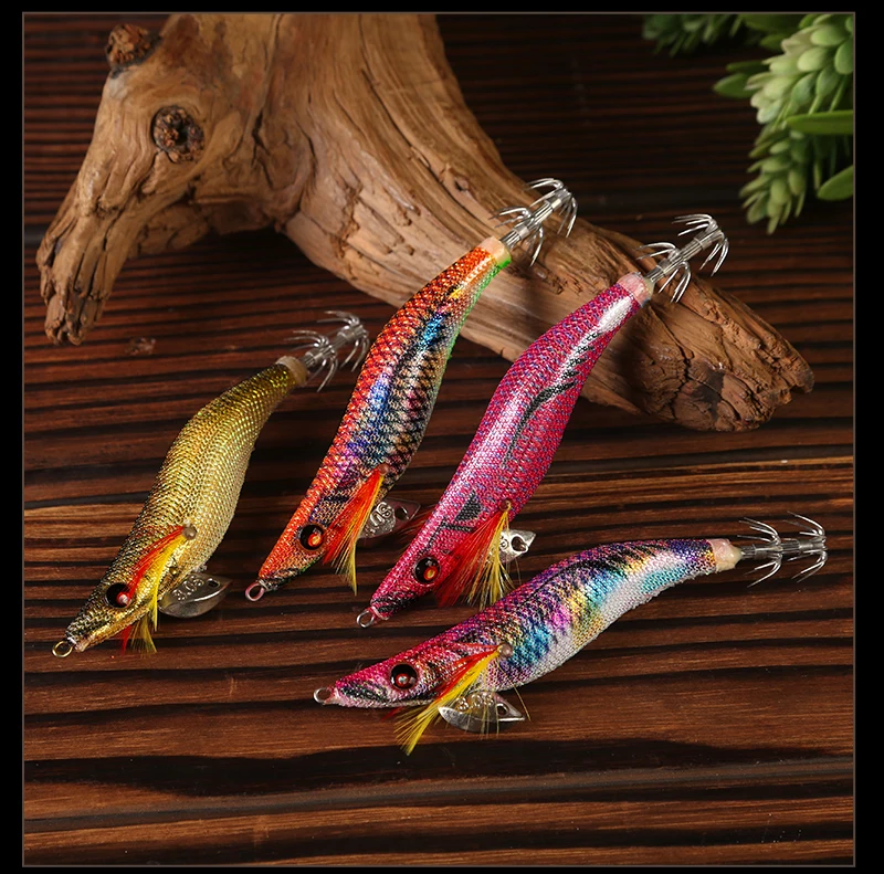 Cebo de calamar FSDZSO 3.0S # Anzuelo de calamar, señuelos de camarones de madera, plantillas, cebo de sepia, simulación realista, cebo de pulpo de silicona
