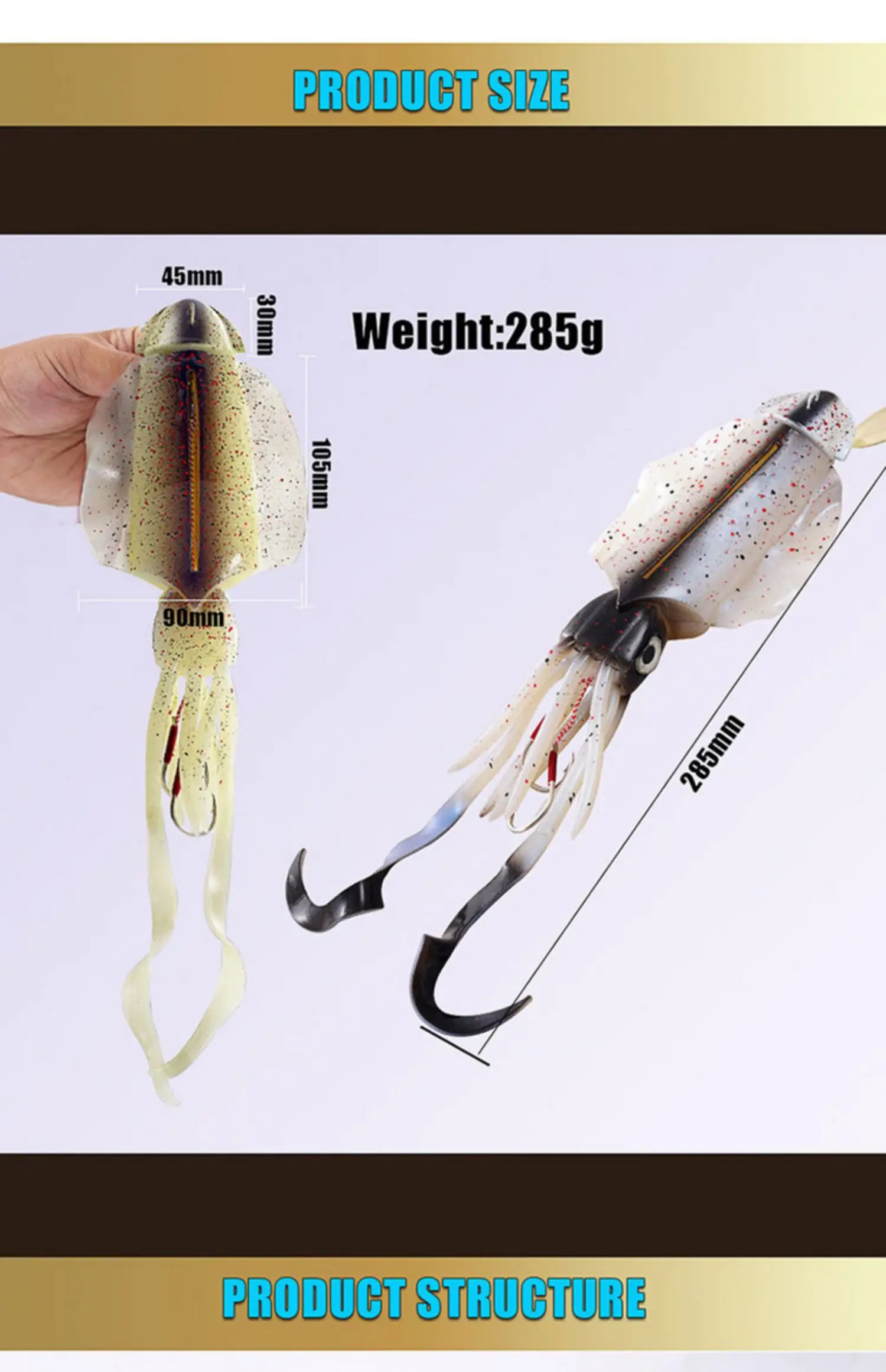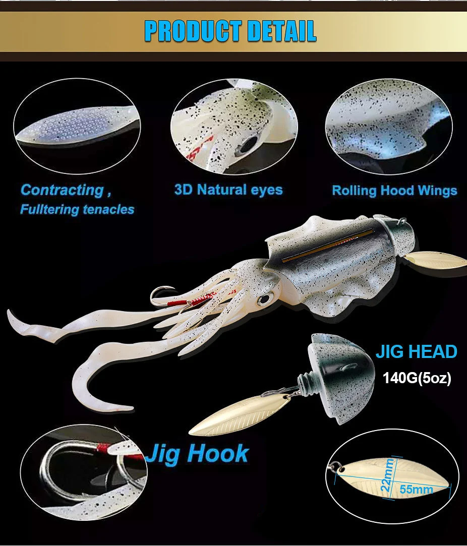 Cebo de calamar de simulación luminosa UV, cebo blando de 285g para pesca en el mar, Luya, cebo para barco de aguas profundas
