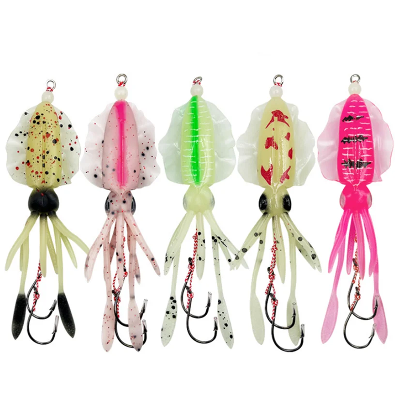 Cebo de calamar suave de 15cm, señuelo de pesca con curricán, cabeza de pulpo, plantilla de calamar UV luminosa para pesca en barco de aguas profundas, cebo Wobblers