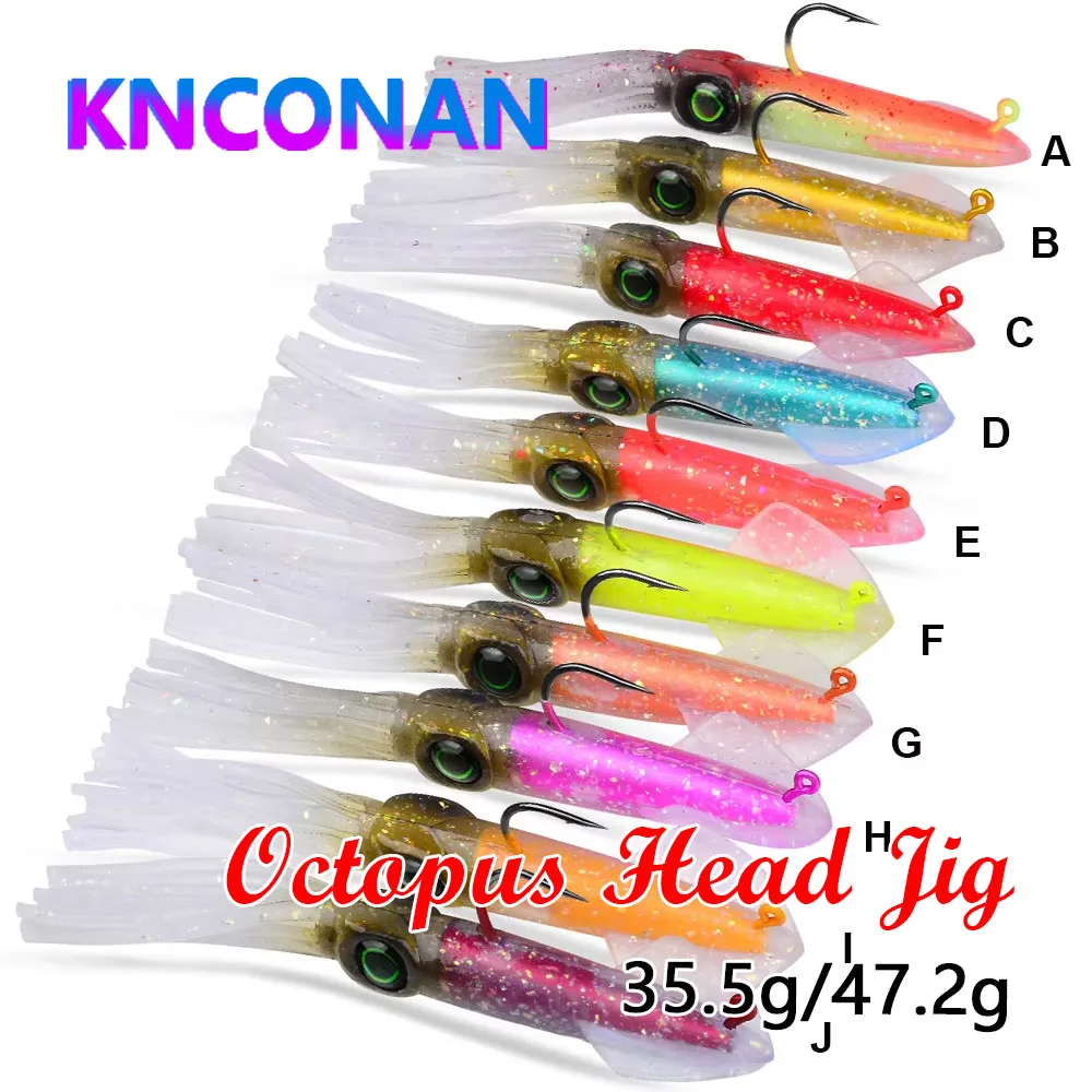 Cebo de calamar suave, señuelo de pesca Trolling, plantilla de cabeza de pulpo, 35,5g, 47,2g, plantilla de calamar UV luminosa para pesca en barcos de aguas profundas, cebo Wobblers
