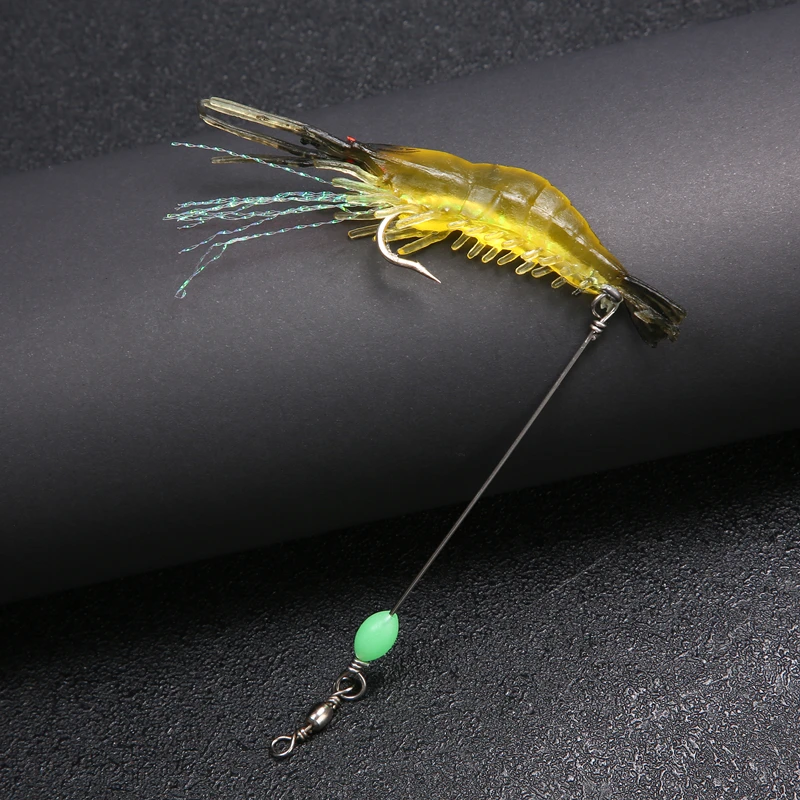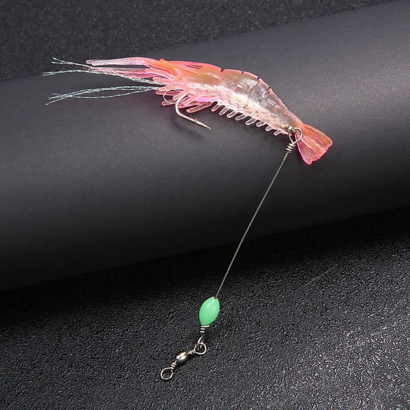 Cebo de camarón de silicona suave luminoso con gancho giratorio de cuentas para pesca, aparejo Sabiki, aparejos de pesca de mar, cebo Artificial, 8cm, 6,5g