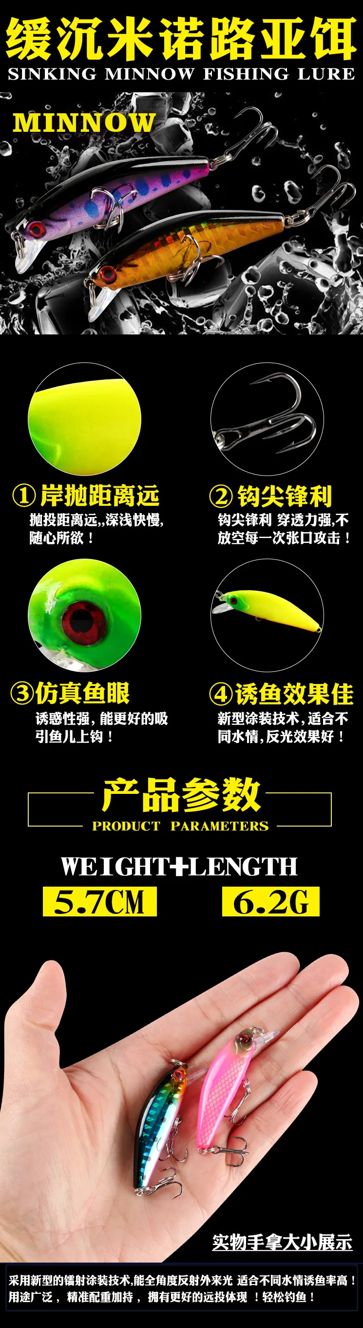 Cebo de carretera de hundimiento lento de 6 gramos de seis ojos, cebo Micro falso, equipo de pesca pintado, suministros de pesca