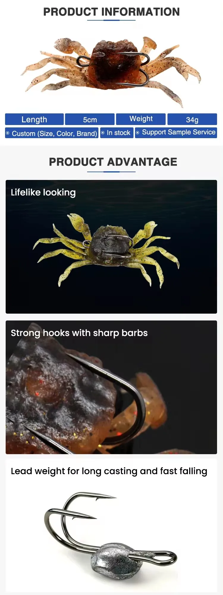 Cebo de carretera de pesca en el mar, cebo blando de 10cm y 34g, simulación 3D con gancho, cangrejo suave todo bien