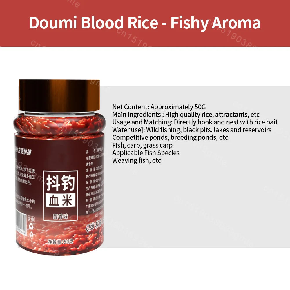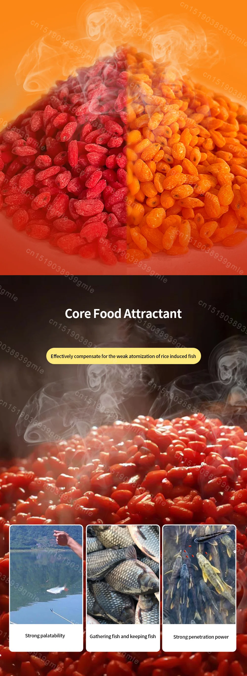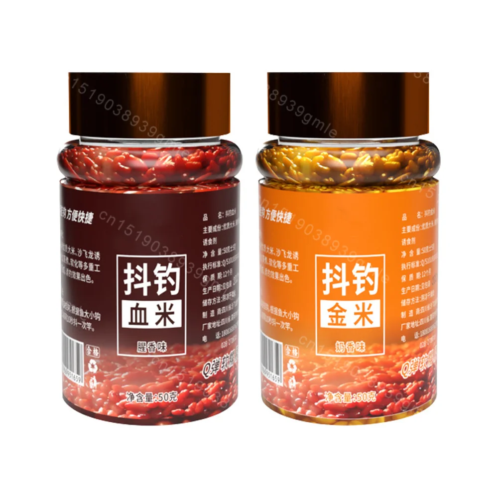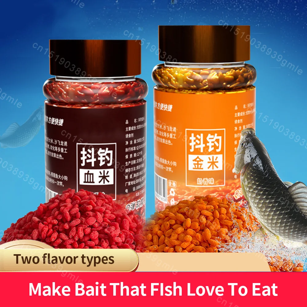 Cebo concentrado para peces atrayentes, cebo de arroz en sangre para pesca salvaje, cebo de partículas rojas portátil, cebo de comida para pesca de arroz dorado