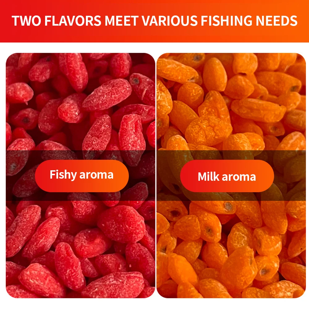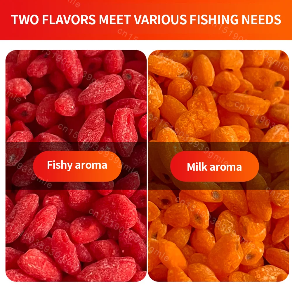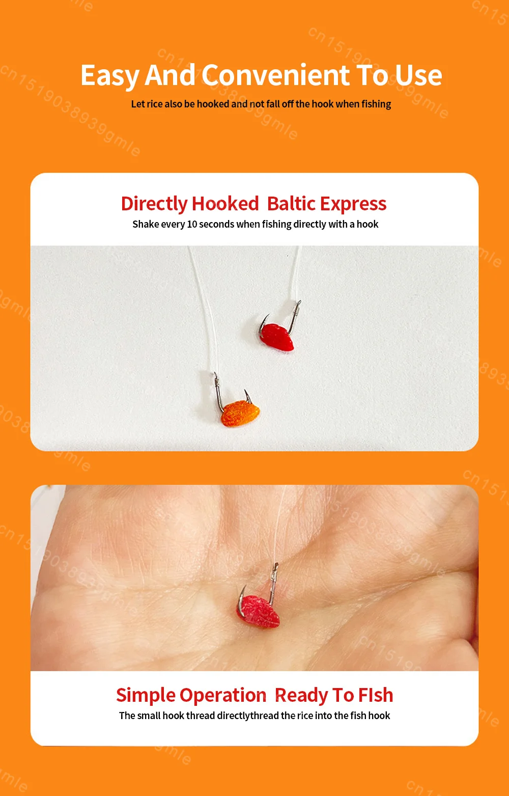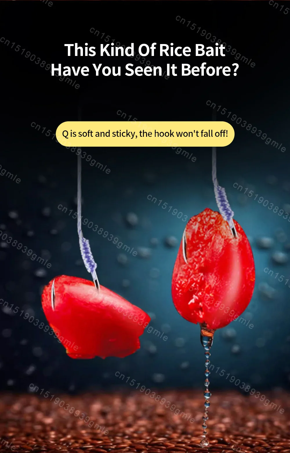 Cebo concentrado para peces atrayentes, cebo de arroz en sangre para pesca salvaje, cebo de partículas rojas portátil, cebo de comida para pesca de arroz dorado