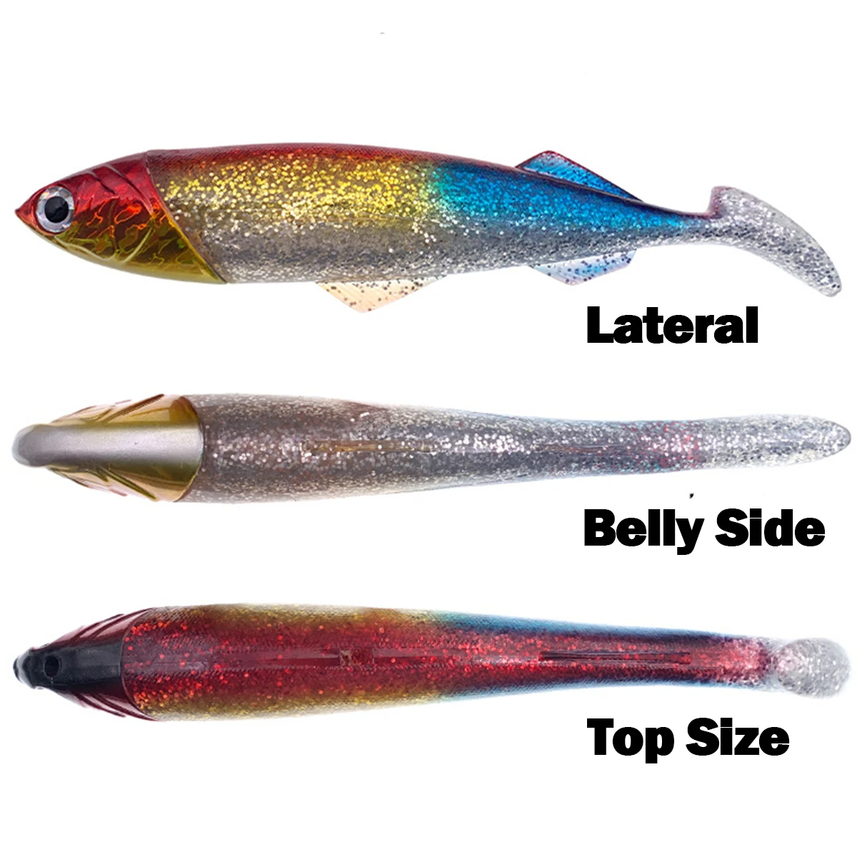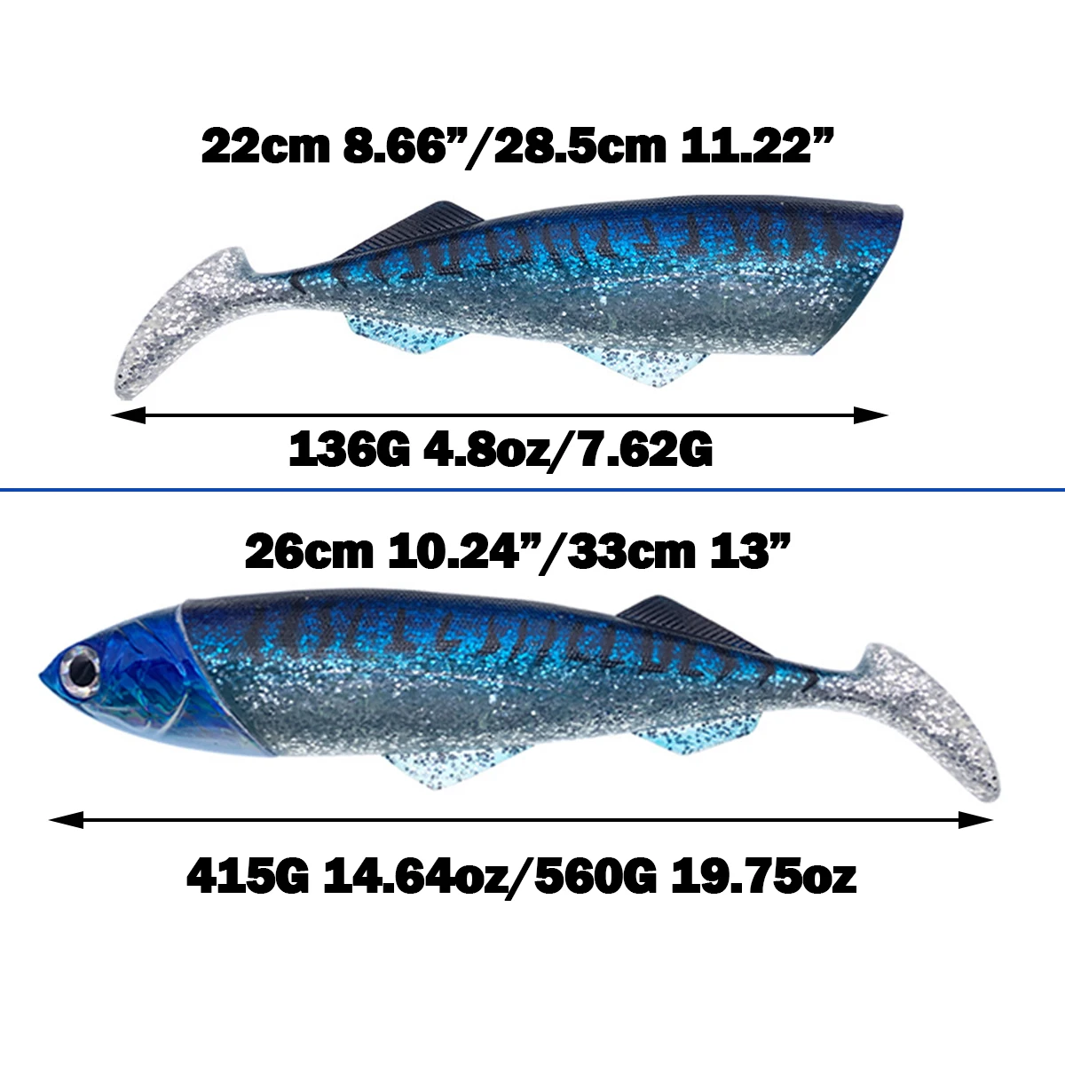 Señuelo de gusano grande Softbait Shad Swimbait, aparejos de pesca de agua salada, señuelo de gusano, pececillo negro, ganchillo, Mahi Marlin, cebo de pesca y curricán