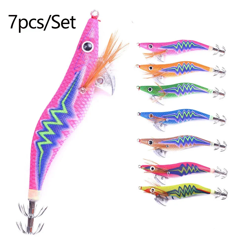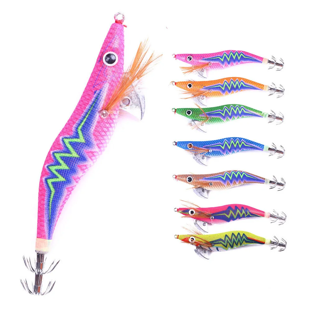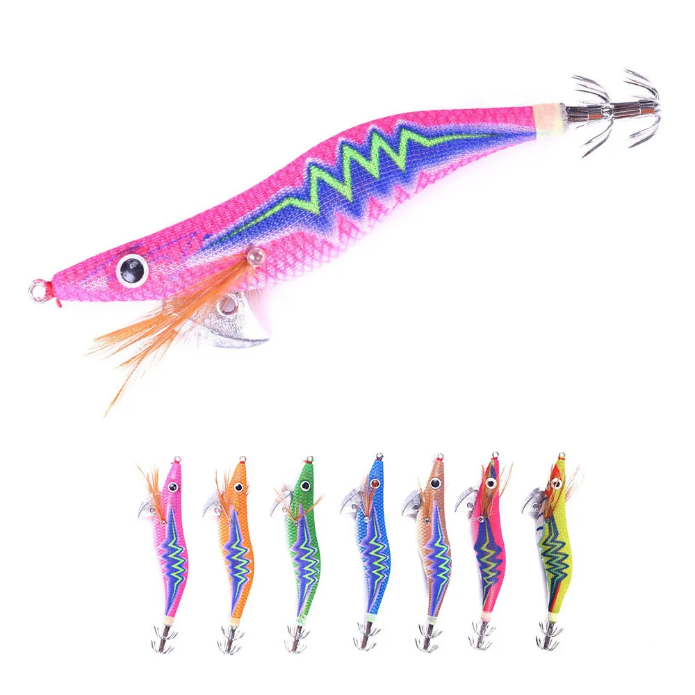 Cebo duro de 105MM, plantilla de calamar luminosa, señuelo de pesca de mar, pulpo de madera, camarón, sepia, anzuelo de calamar Artificial, aparejo Wobbler, aparejos de pesca