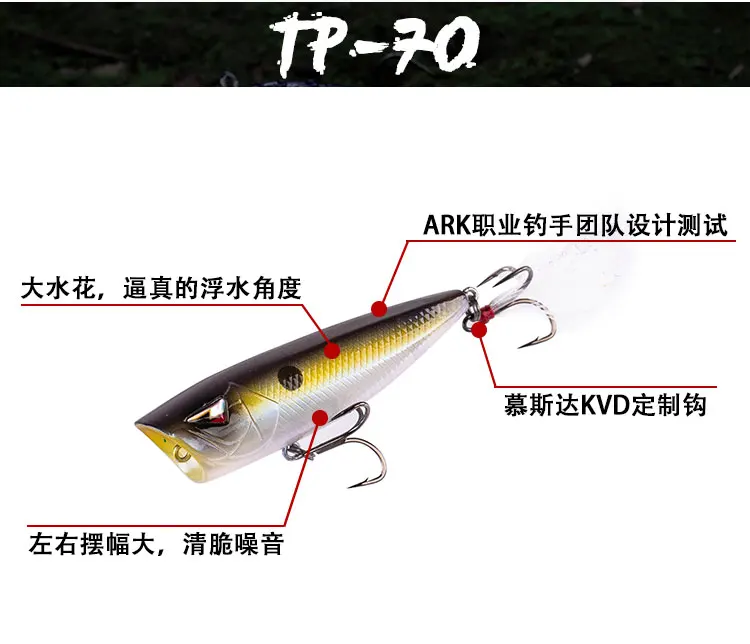 Cebo duro American ARK TP70 sistema de agua de escalada ondulada señuelo gancho de pluma cebo falso Popper multicolor 10,5g