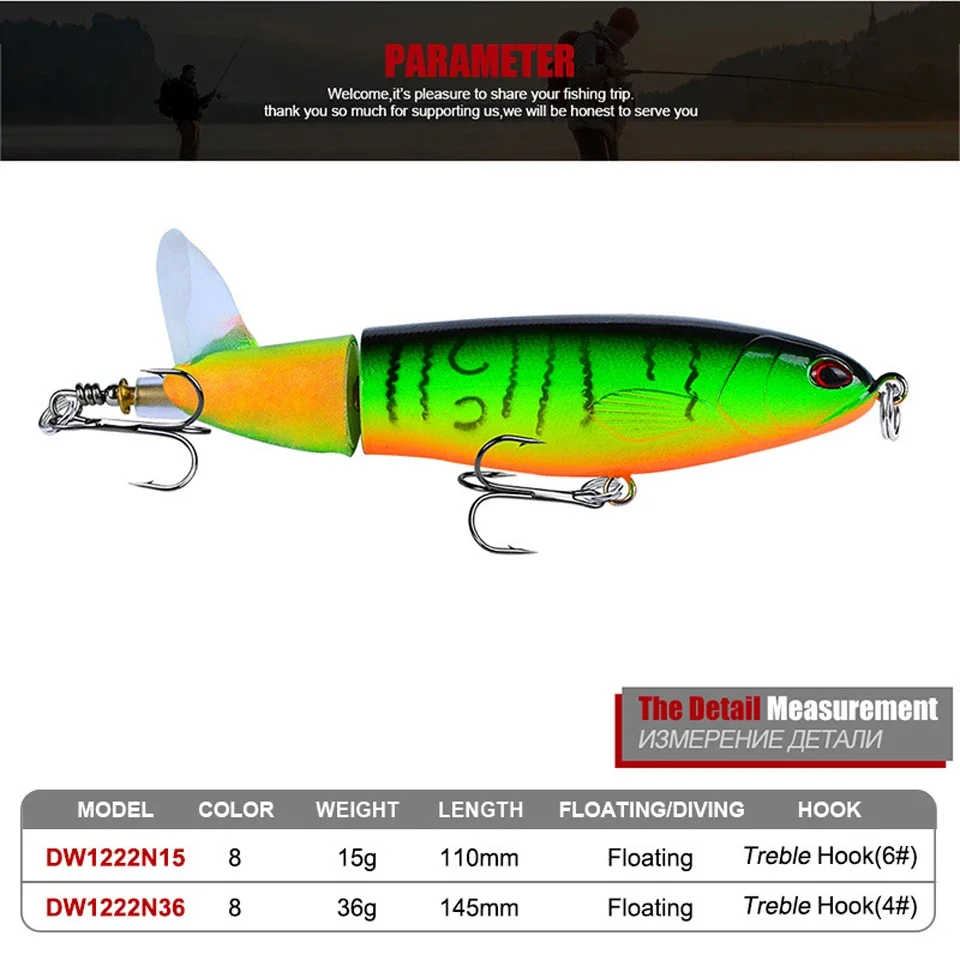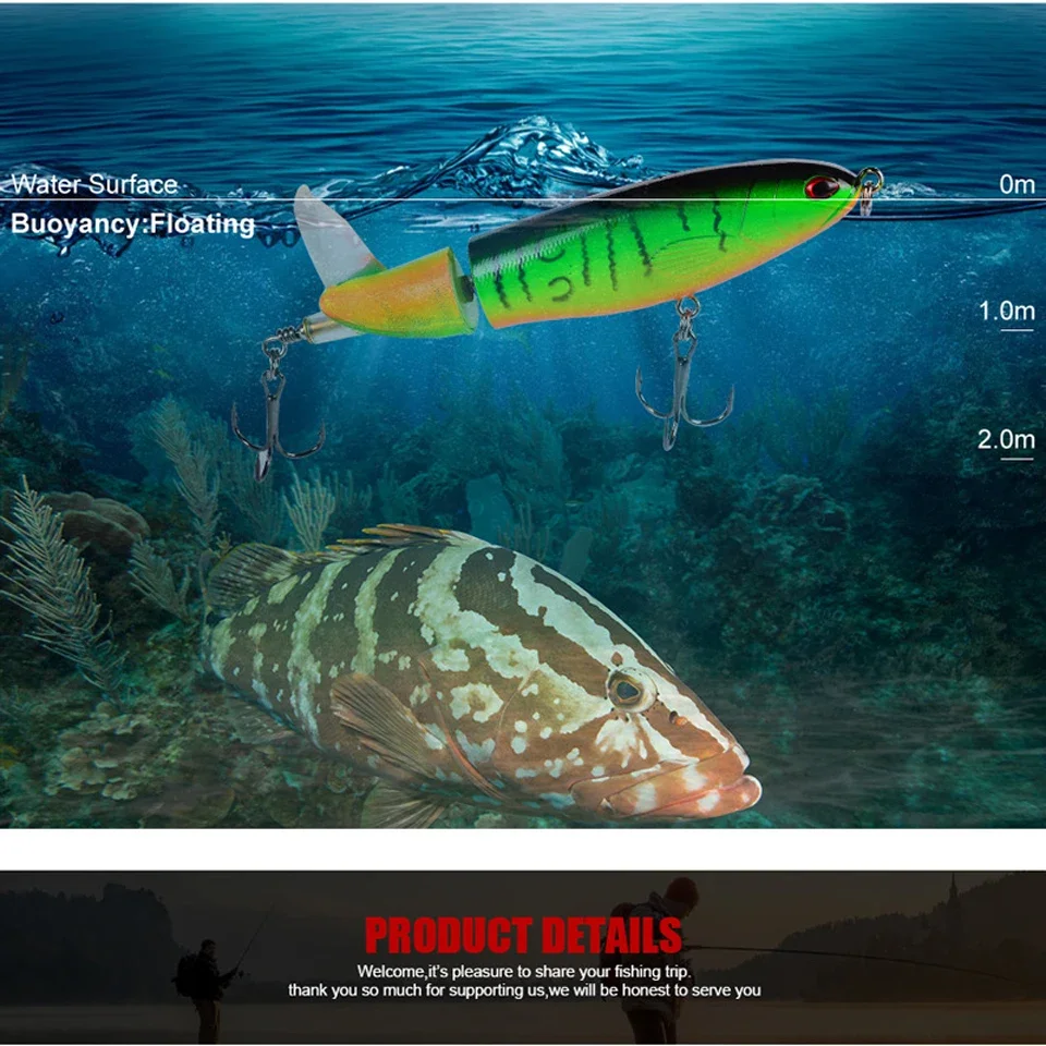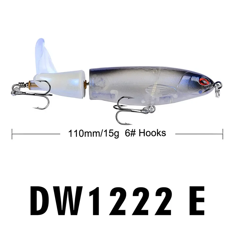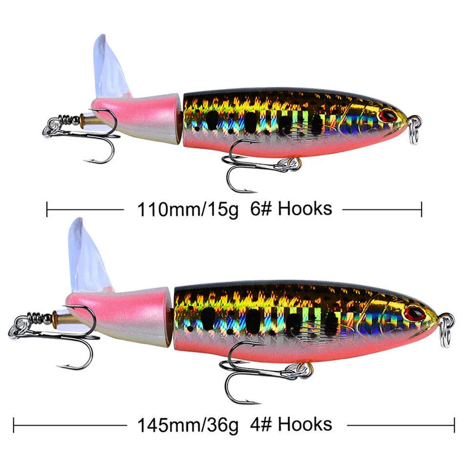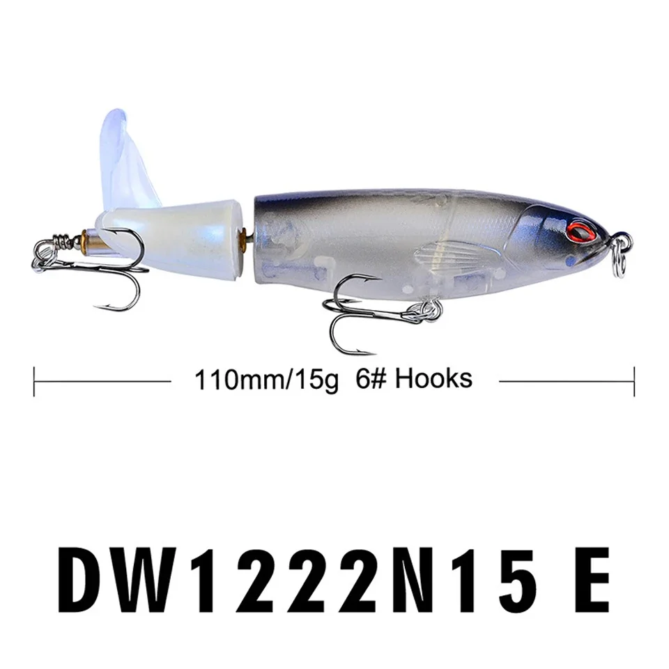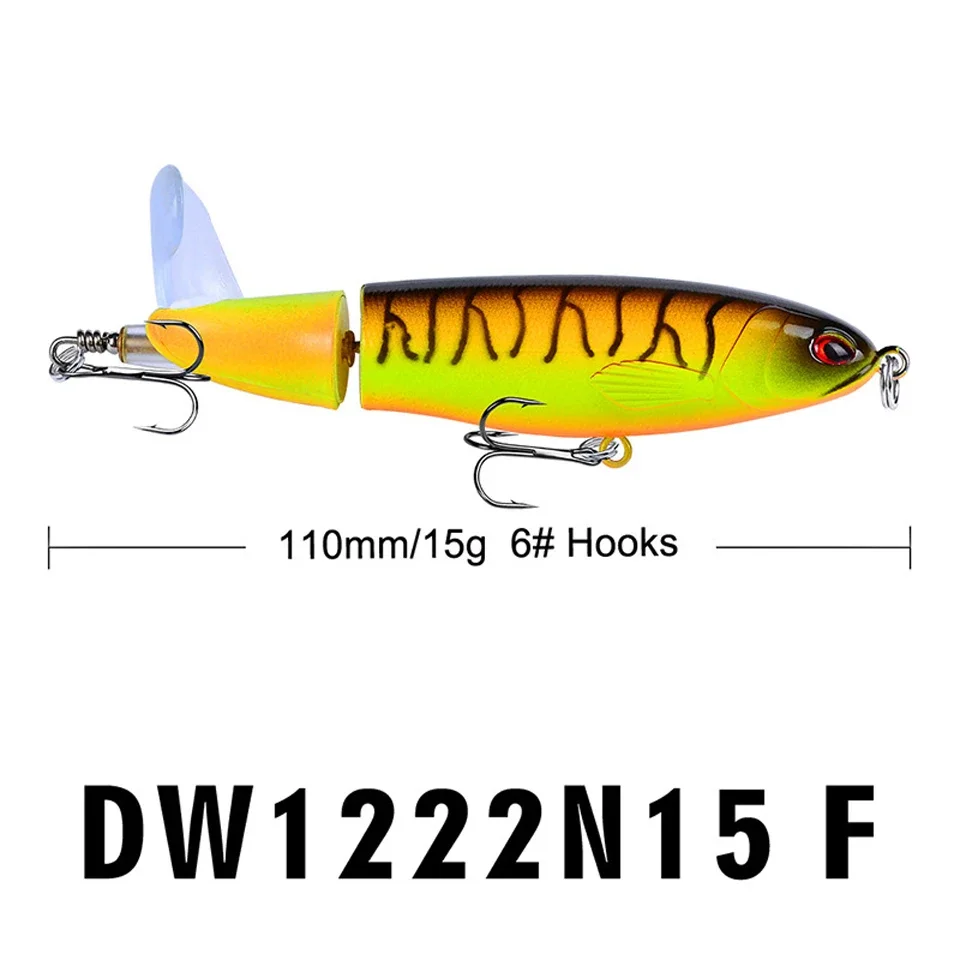 Cebo duro flotante de alta calidad, ojos 3D, señuelo de pesca Popper de agua superior, cebo duro, 15G, 11CM, Wobbler, aparejos de pesca de cola giratoria