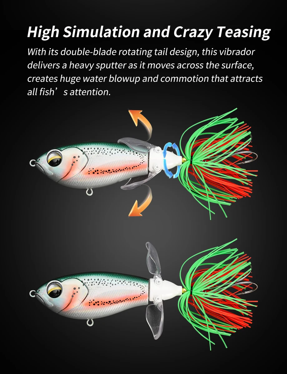 Cebo duro flotante Wobbler de fundición larga, 9,5 cm, 19,5g, cebo Chatter, señuelo de pesca en agua superior, cola giratoria Popper