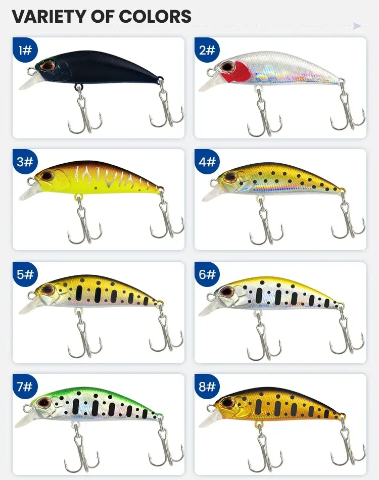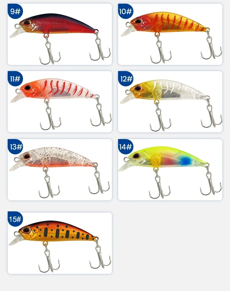 Tipo de señuelo de pesca: lanzamiento de agua dulce, señuelo de pesca con curricán de agua dulce, gatos de agua salada, señuelo de curricán de agua salada, señuelos de jigging, señuelos de trucha, señuelos de Lucio, señuelos de perca, señuelos de larguero, señuelos de marido, señuelos de calamar, señuelos de metal, señuelos de rana, señuelos de minnows, señuelos de crankbait, Señuelos VIB, Señuelos de lápiz