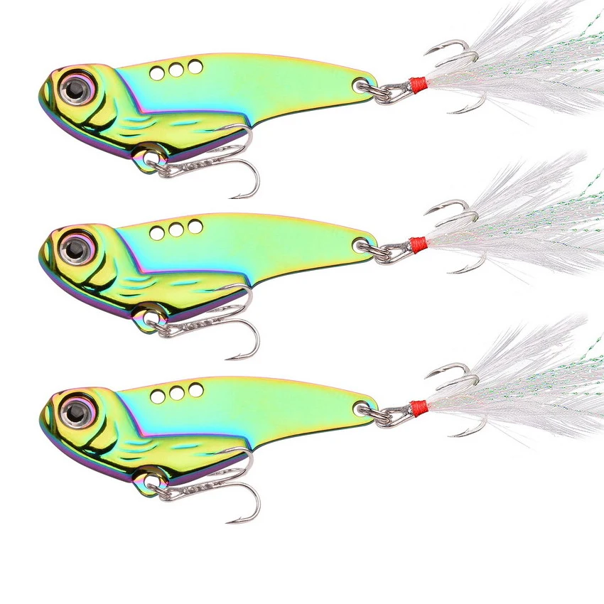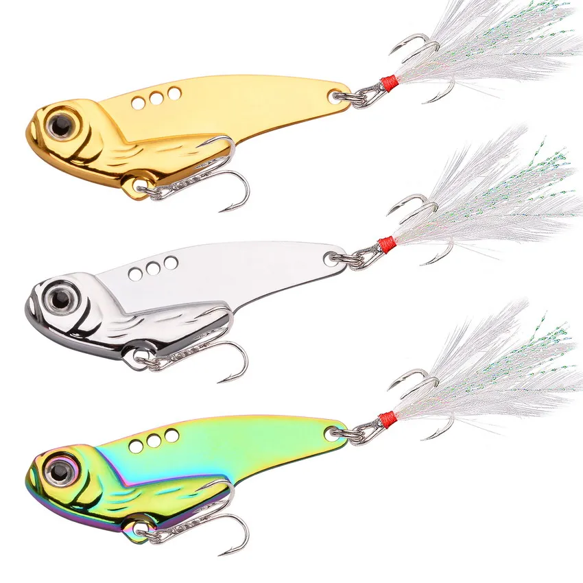 Cebo duro de Metal para Pesca, anzuelo de 3 uds, VIB Blade, cuchara de aguja giratoria vibratoria, Jigs, aparejos de trucha, toda la capa de agua, cebos de Pesca para hundir