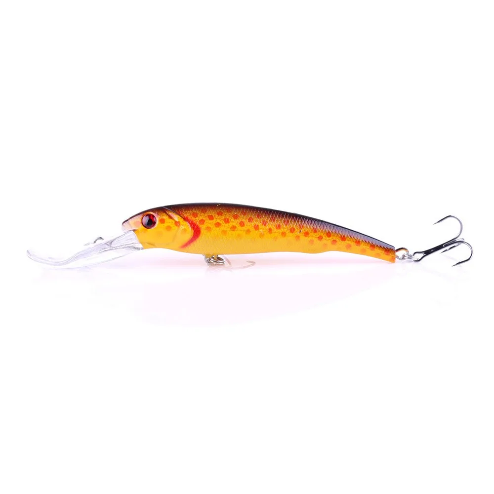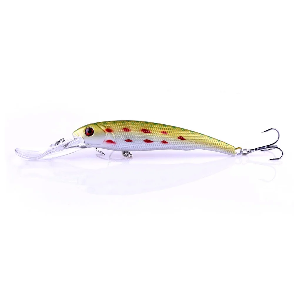 Tipo: señuelo de pesca Minnow Peso: 29G Longitud: 16,5 cm Anzuelos: Equipado con 2 anzuelos de calidad Color:12 colores diferentes Pescado objetivo: Cacho pálido, lubina, lucios, carpa Yellowcheck, perca china, culter Topmouth, etc. Lista del paquete: 1 ud. Señuelos de pesca. Nota: Debido a los diferentes monitores y efectos de luz, el color real del artículo puede ser ligeramente diferente del color que se muestra en las imágenes. Permita una desviación de medición de 1-2cm debido a la medición manual. ¡Gracias!
