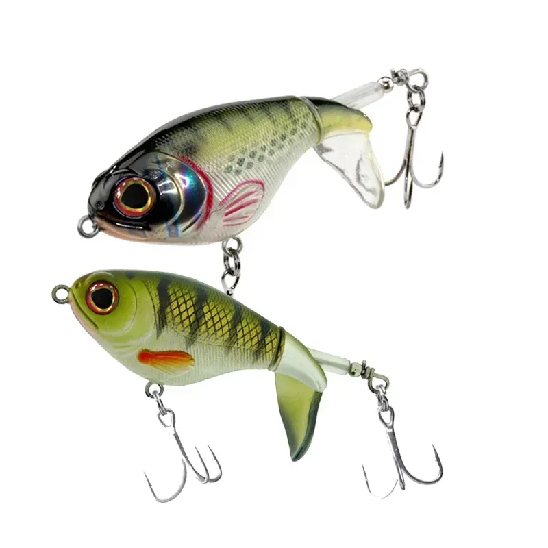 3.Crea salpicaduras ruidosas.Cuando el señuelo se desliza sobre el agua, la estructura de la hélice en la cola produce continuamente fuertes salpicaduras para atraer la atención de los depredadores submarinos.