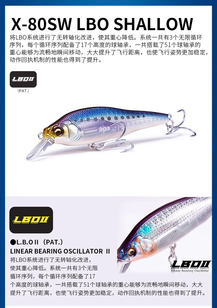 Cebo falso japonés Mino X-80SW de largo alcance de hundimiento lento, duro biónico de lubina de agua de mar ligera