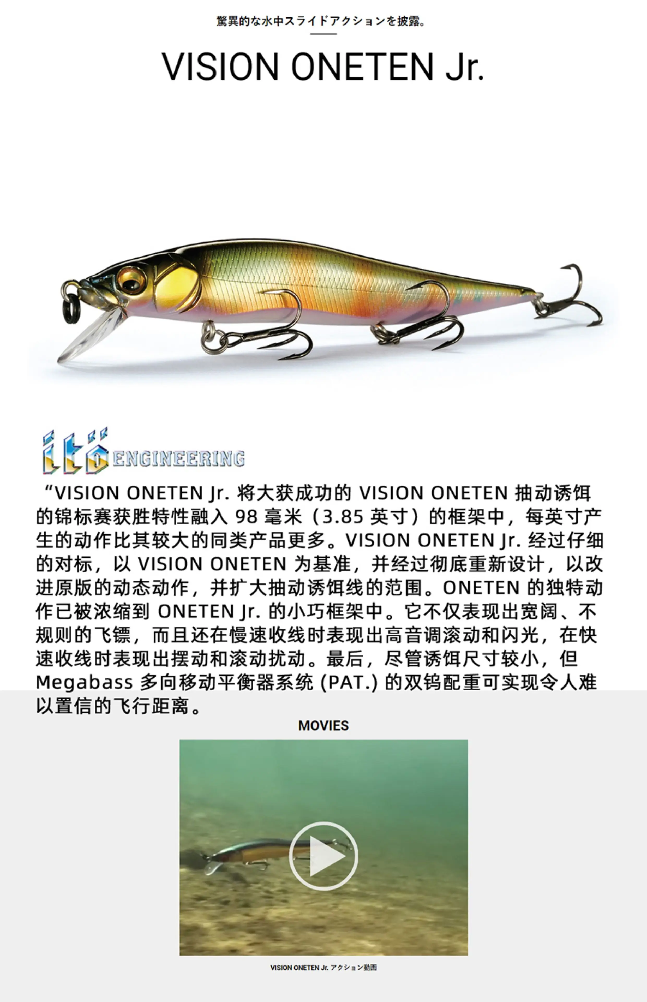 Cebo falso japonés original suspendido Mino ONETEN JR de largo alcance Seabass Luya 10,5g