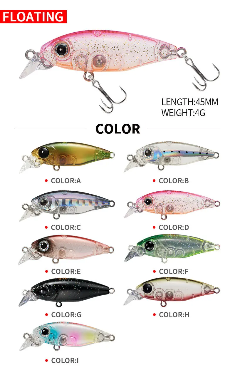Cebo falso pececillo de agua flotante, cebo Luya 45MM/4G, pesca para pez mandarín con cebo de boca curva, micro cebo