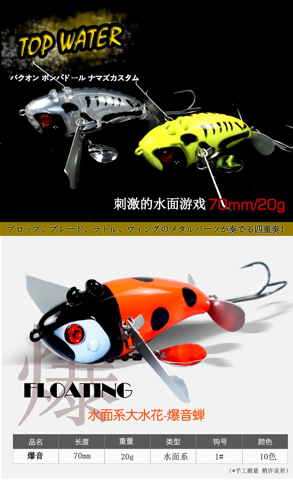 Cebo flotante de 7cm y 20g, Señuelos de Pesca Popper de agua superior de mar, Wobblers giratorios de agua salada, Plopper duro, cebo Artificial de cola giratoria