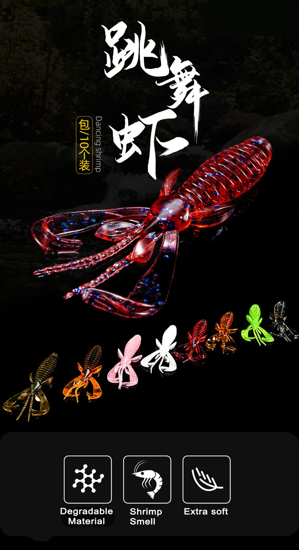 Cebo flotante de silicona para pesca, señuelo de gambas de Texas, Wobblers para perca de lubina, 10 unids/paquete