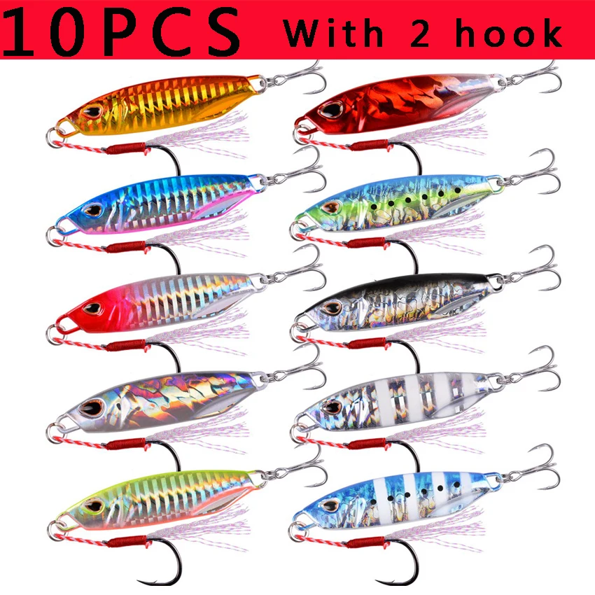 Cebo giratorio de Metal fundido largo, Señuelos de Pesca en el mar, cebo duro, aparejos, 10 unidades
