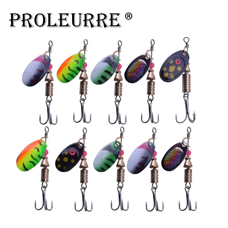 Cebo giratorio negro de Boca Grande para pesca, cebo de Metal para pesca con barba, plantilla de goma, 10 unids/set, 3,5g-5,5g, YR-408