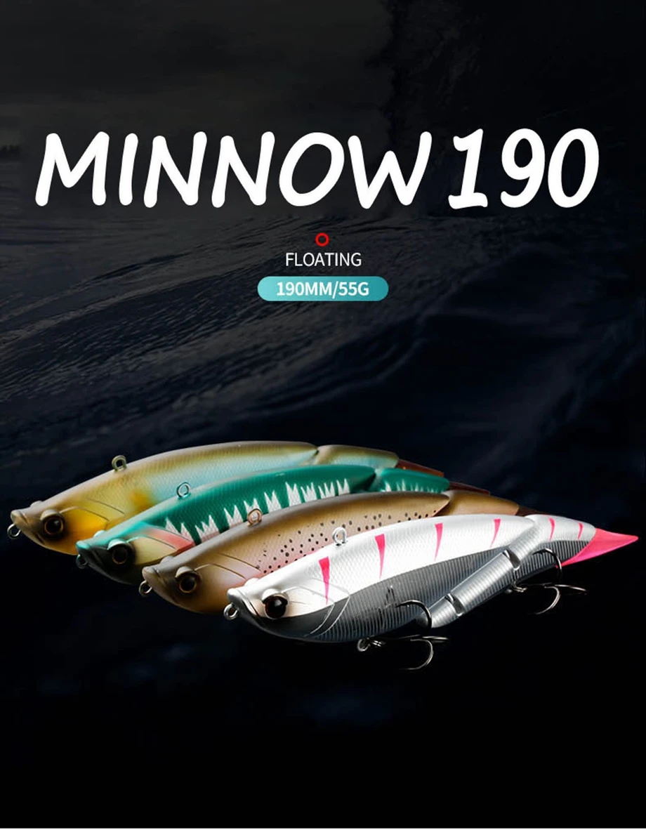 Cebo grande con segmento de vibración flotante, 19cm, 55g, Wobblers, 2 secciones, Swimbait articulado, señuelo de pesca, cebos de cola suave
