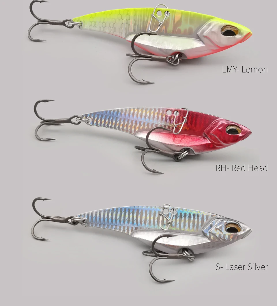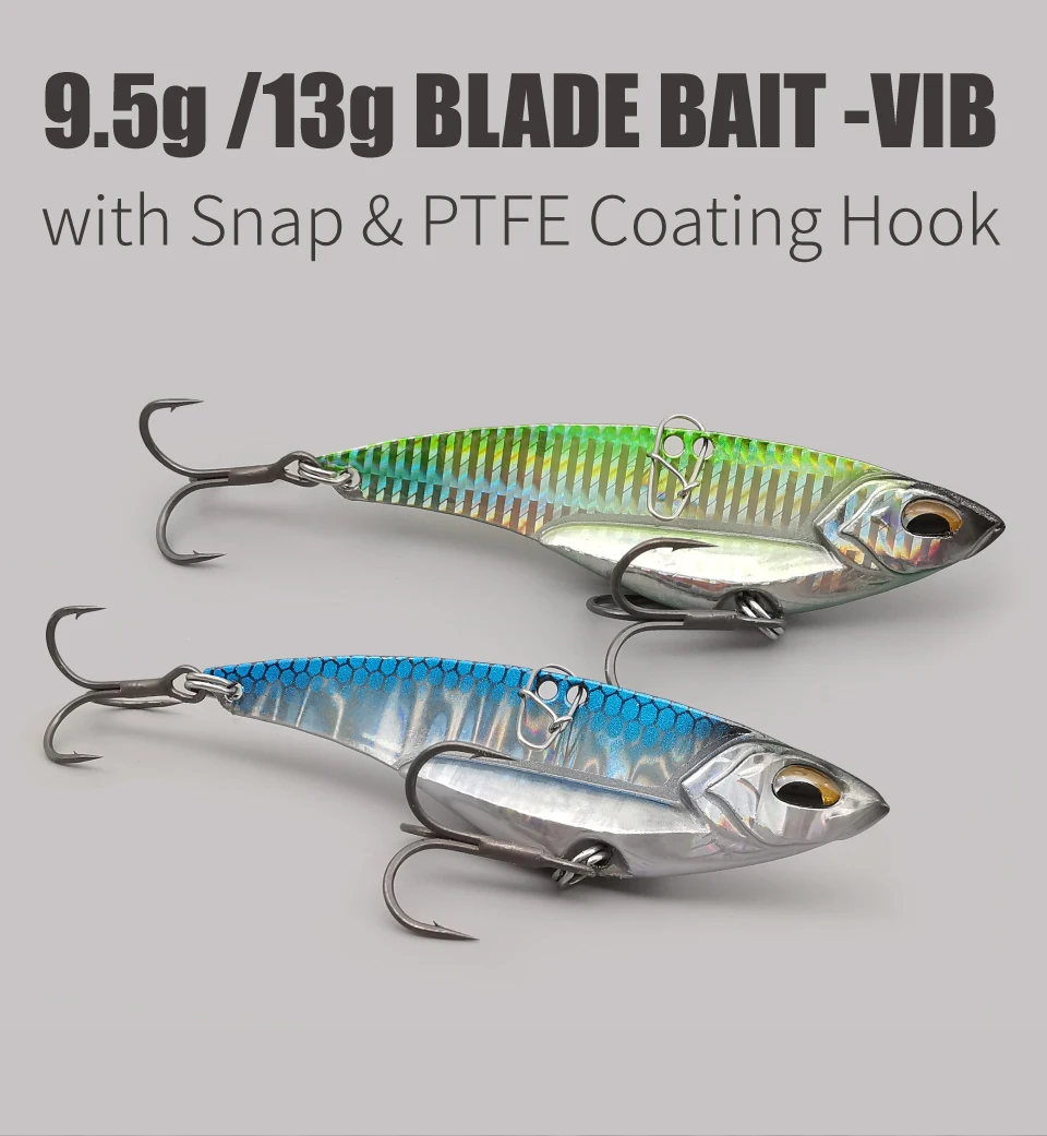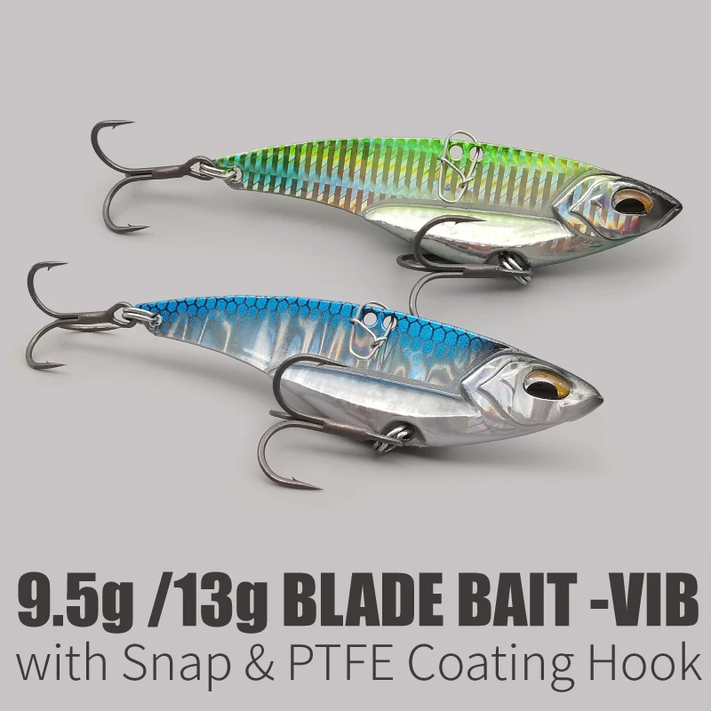 Cebo de hoja de 9,5g y 13g, vibración de Metal, fundición larga, cierre rápido y revestimiento súper deslizante de PTFE, 4X-anzuelos triples fuertes, señuelo de pesca