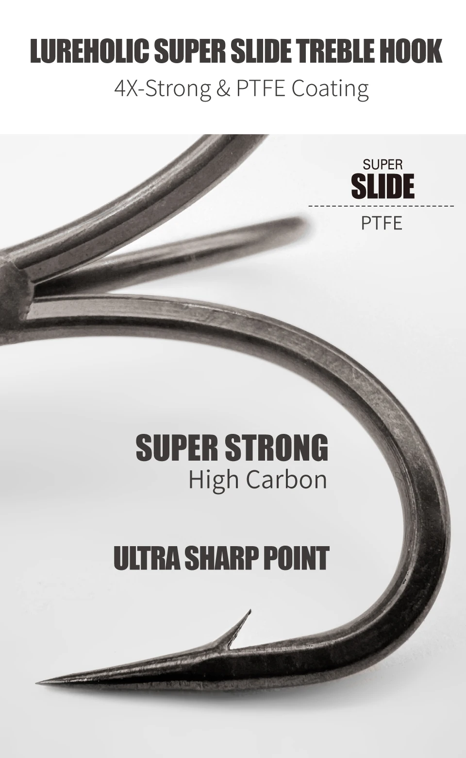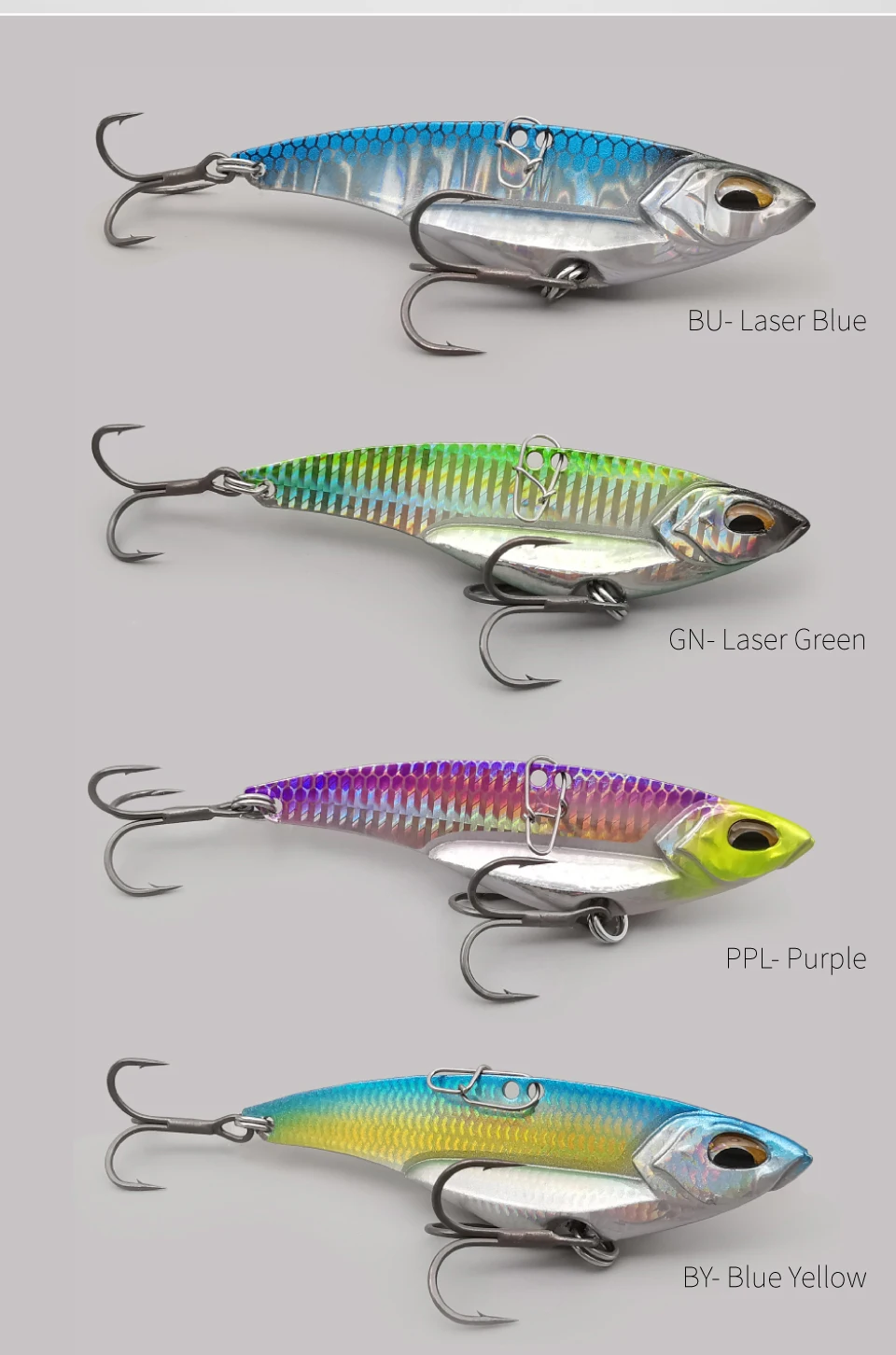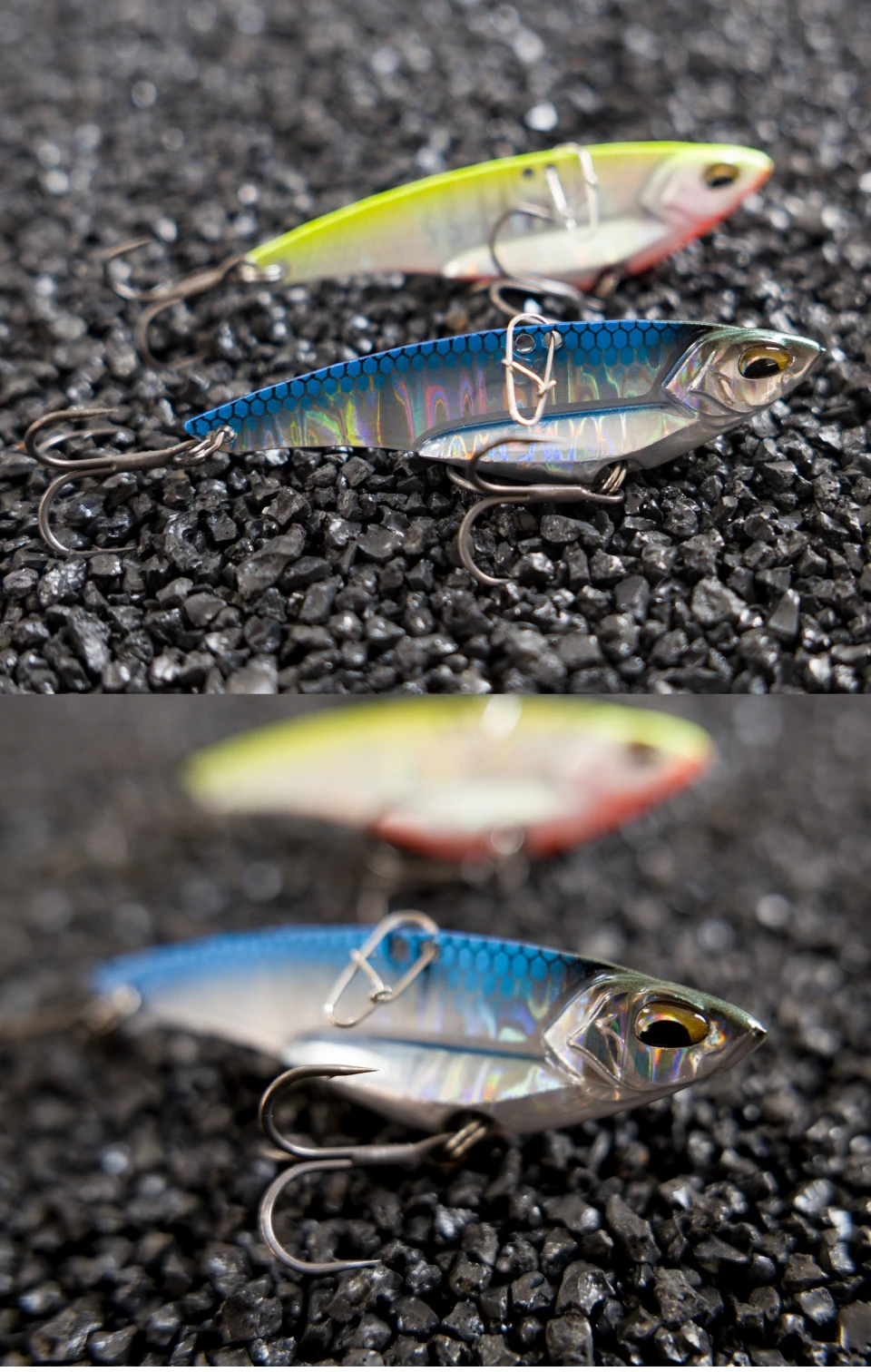 Cebo de hoja de 9,5g y 13g, vibración de Metal, fundición larga, cierre rápido y revestimiento súper deslizante de PTFE, 4X-anzuelos triples fuertes, señuelo de pesca