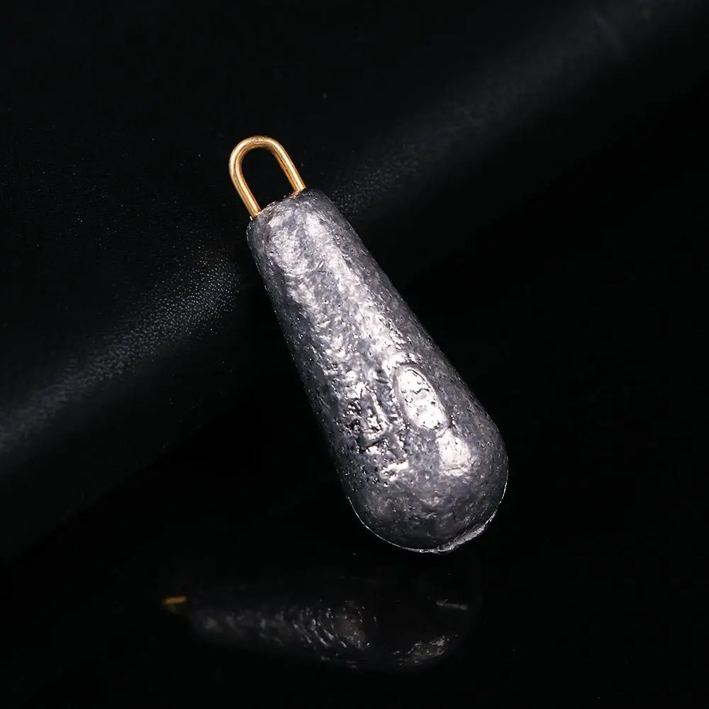 Solid water droplets type Lead fishing sinkers, hooks and stabilize this product can increase the weight of the fishing line without any damage.