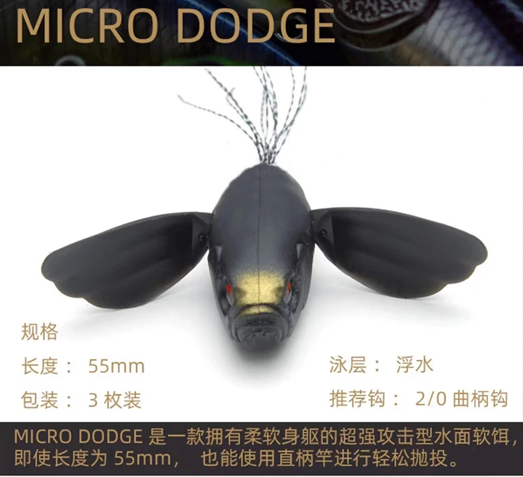 Cebo de insectos biónico para escalada, cebo blando de onda de agua flotante, MICRO DODGE, percha Subbait, japonés, RAID