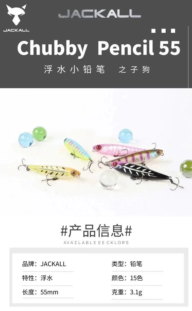 Cebo japonés Jackall Luya, cebo Stream Pencil chubby55 3,1g, agua de pesca flotante, hijo, perro