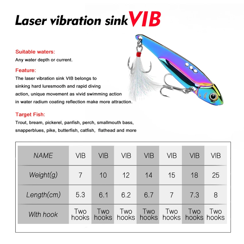 Detalles del productoMarca: nuevoTipo: señuelo de pesca Vib de metalPeso: alrededor de 7g,10g,12G, 15G, 18g,25gLongitud: aproximadamente 5,3 cm, 6,1 cm, 6,2 cm, 6,7 cm,7cm, 7,3 cm,8cmColor: coloridoLista de embalaje3 Señuelos de Pesca,