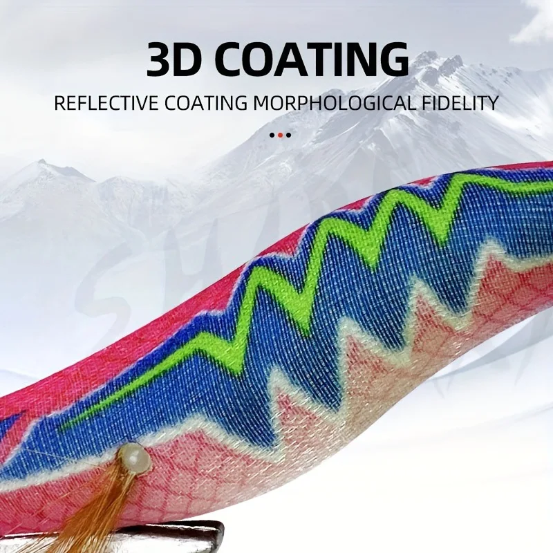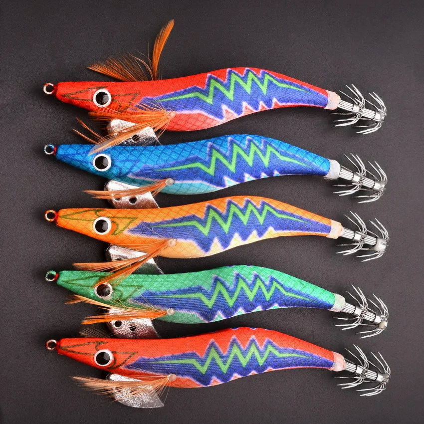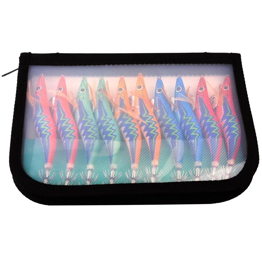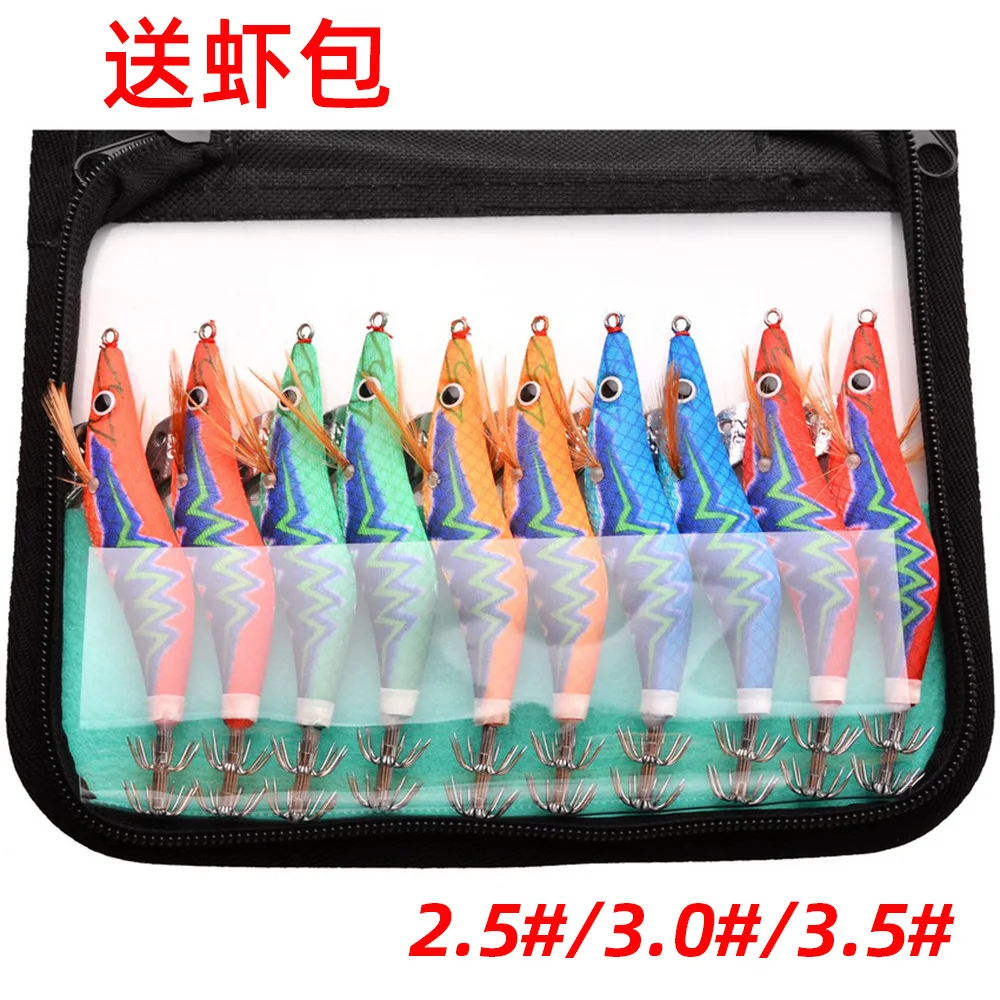 Cebo luminoso de camarones de madera brillante, 10 unidades, 2,5 # 3.0 # Plantillas de calamar con anzuelos de calamar y pulpo, señuelo de pesca ligero noctilucente de sepia