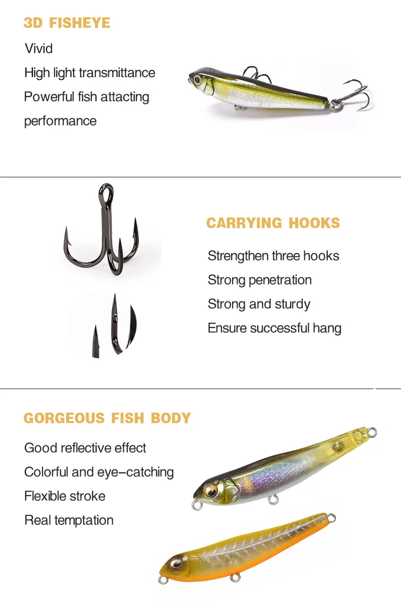 Descripción:¡Inspira la diversión de la pesca! Nuestros señuelos están especialmente diseñados para entusiastas de la pesca y están cuidadosamente elaborados con ingredientes de alta calidad para garantizar que sean atractivos. Tanto si es un nuevo pescador como un pescador experimentado, tenemos una amplia gama de señuelos con una variedad de gustos para satisfacer su búsqueda de diferentes especies de peces. Nos comprometemos a proporcionar la mejor experiencia de pesca y facilitarle la captura del pez grande de sus sueños. ¡Haga que su viaje de pesca sea emocionante y divertido con nuestros señuelos, y haga de cada viaje de pesca una aventura para recordar!
